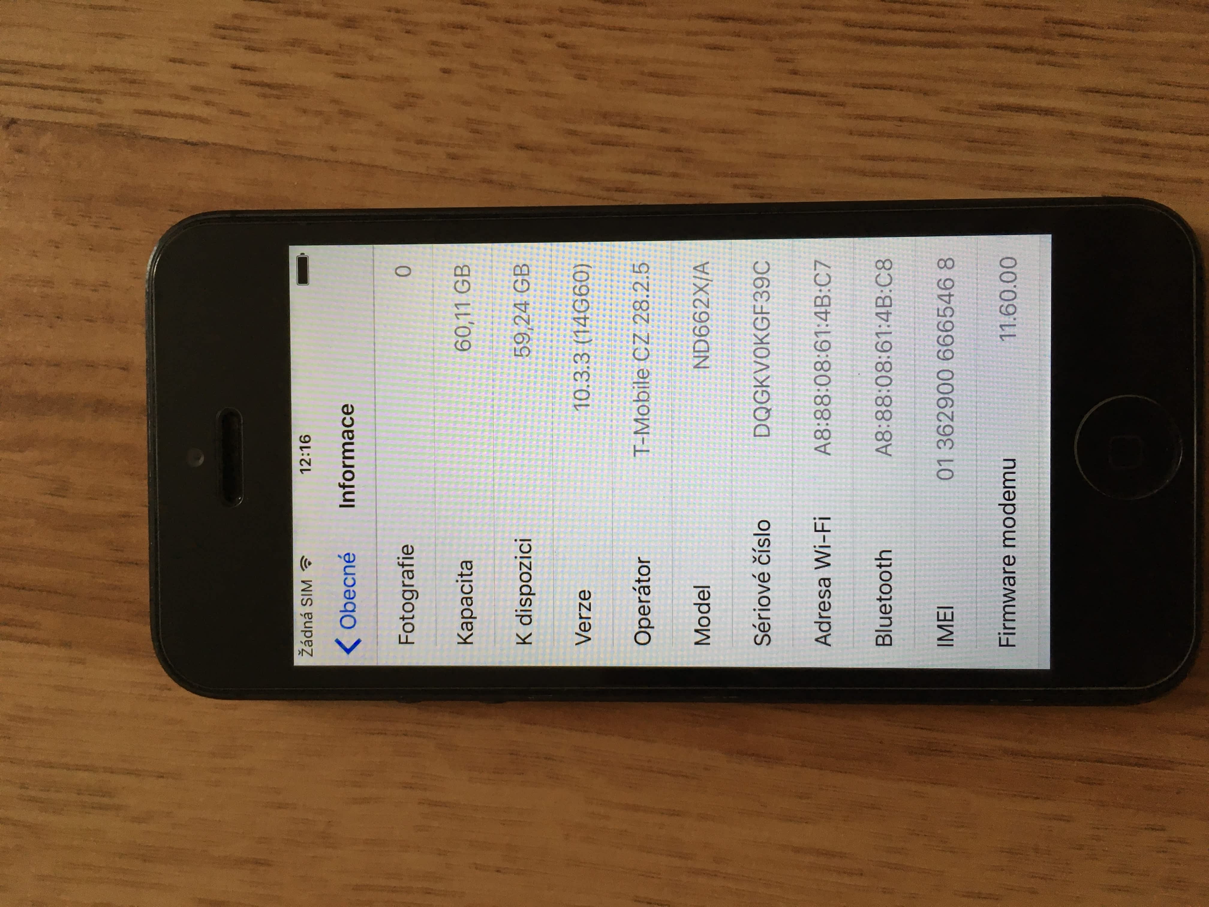 telefon byl kupován na konci roku 2013, model iPhonu je ND662X/A – detailnější info níže: