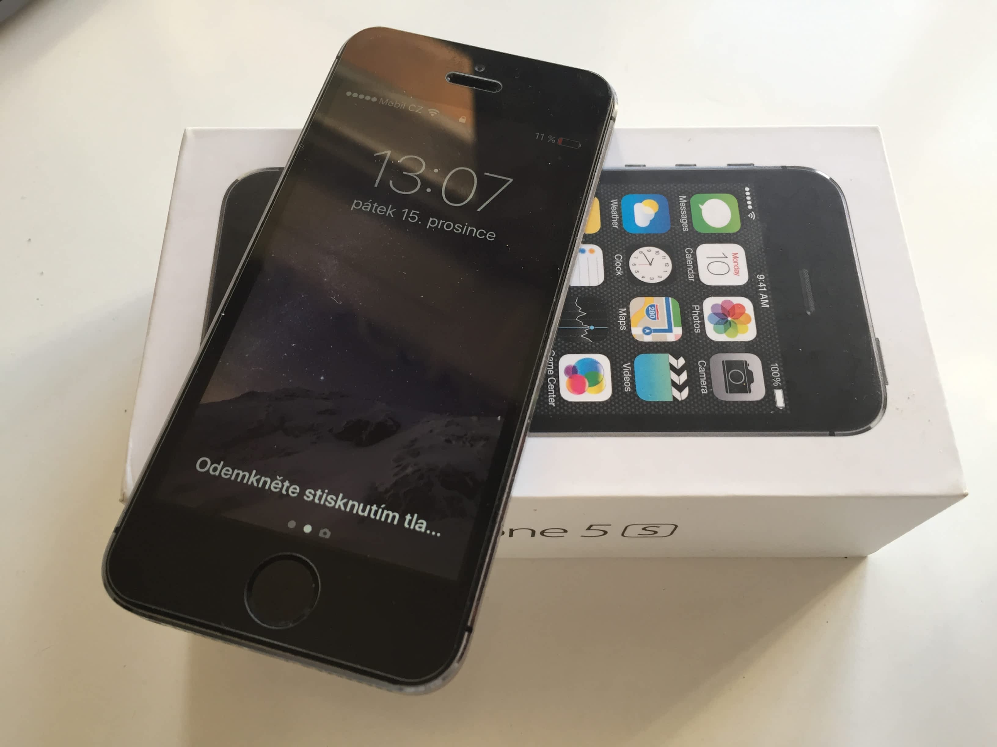 Dobrý den, prodám Apple iPhone 5S 16gb Space Grey. iPhone nemá na displeji ani na zadní straně jediný škrábanec či naťuknutí. Má na sobě stále zepředu temperované sklo a folii od firmy ZAGG v ceně 1200 Kč.