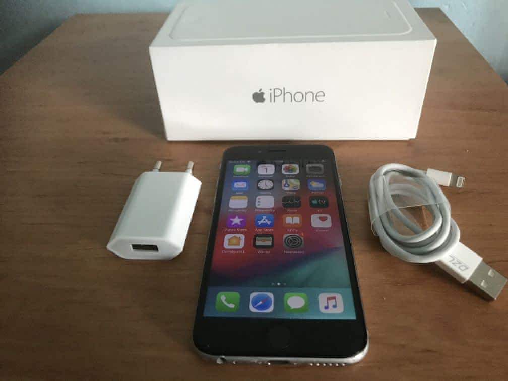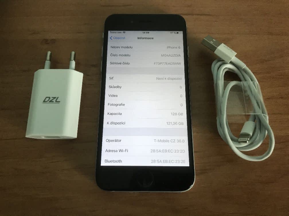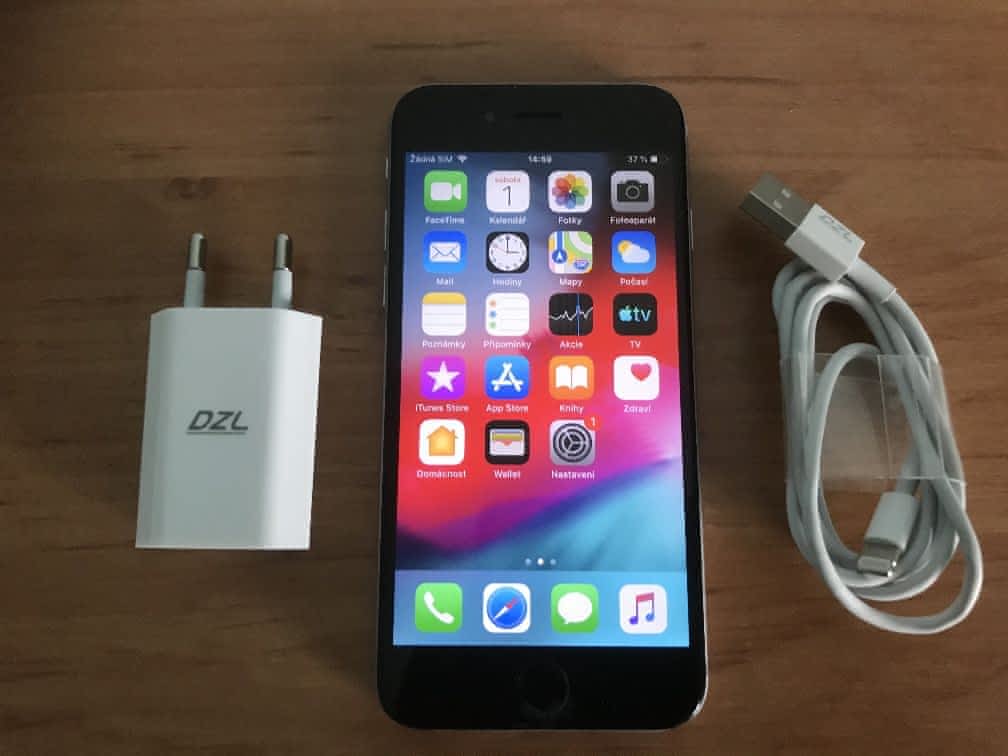 Prodám originál Apple – iPhone 6, 128GB – černý, stříbrná záda, s datovým kabelem, síťovou nabíječkou, s jehlou na vytáhnutí Sim karty a krabicí. IPhone je zcela funkční, displej bez škrábnutí, rohy nepatrně odřené, záda perfektní – viz foto. Není blokovaný na žádného operátora, odhlášený z iCloudu, bez číselného zámku, připravený pro nového majitele. Budete ho moci okamžitě začít používat. Ovládací tlačítka jsou v pořádku, otisk prstu funguje, baterie má ještě dobrou výdrž.