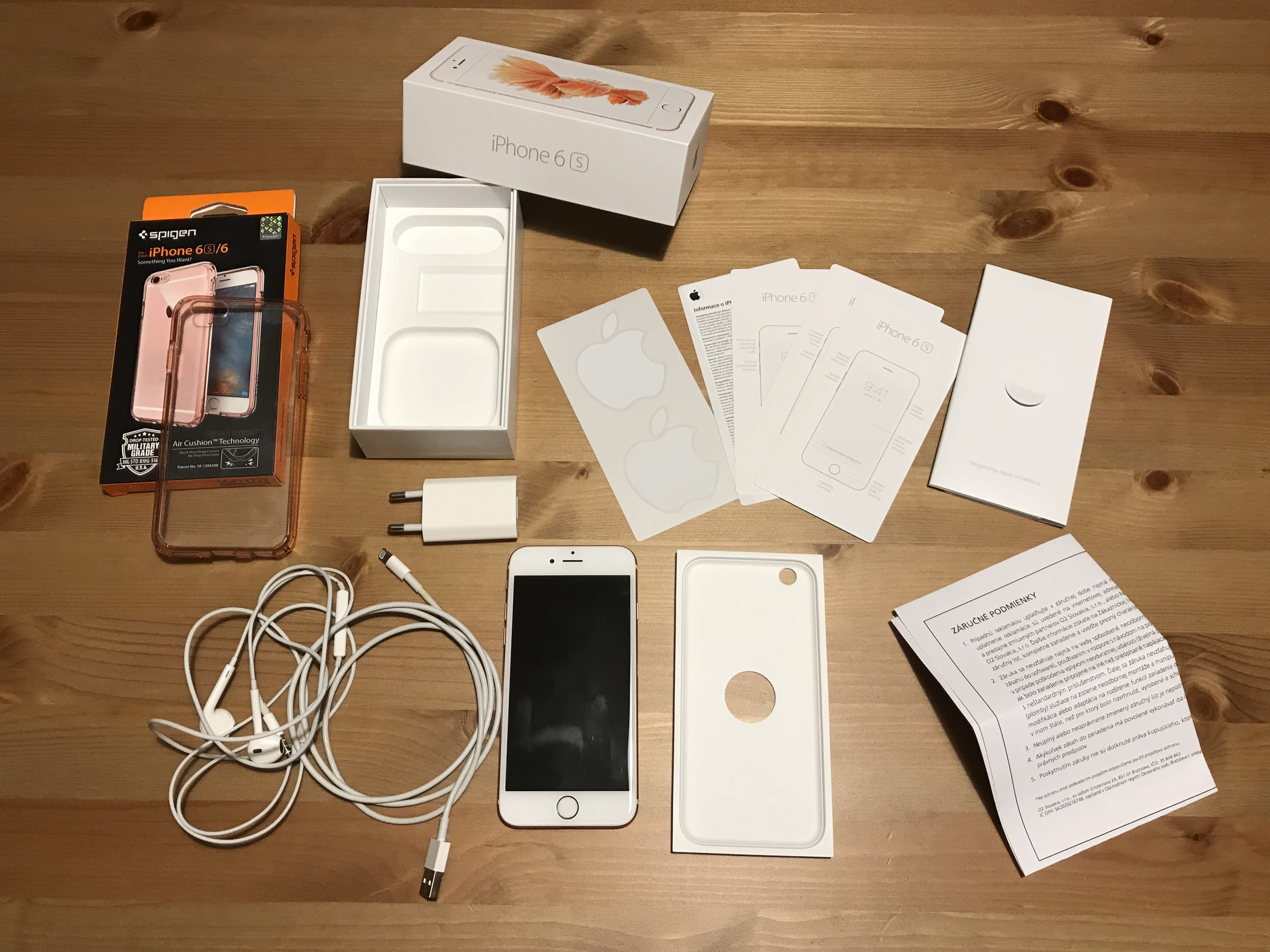 Predávam iPhone 6S 16GB Rose Gold, s krabicou, nabijacim adapterom, sluchadlami, kablom, nalepkami cize komplet balenie. Zaruka do 22.12.2017, kupovany v O2 na Slovensku. Dovod predaja prechod na novsi model. Telefon funguje bez problemov, Touch ID funguje, displej nie je prasknuty, noseny cely cas v puzdre, pri fotaku ma dve male zafarbenia (vid foto), nie je to ryha, necitit prsom preliacinu ani nic podobne. K telefonu dam aj priehladny kryt Spigen s rose gold bumperom, kupovany pocas tohto leta, v dobrom stave nezozltnuty. Pokial citas tento inzerat, je stale platny (plati do zmazania).