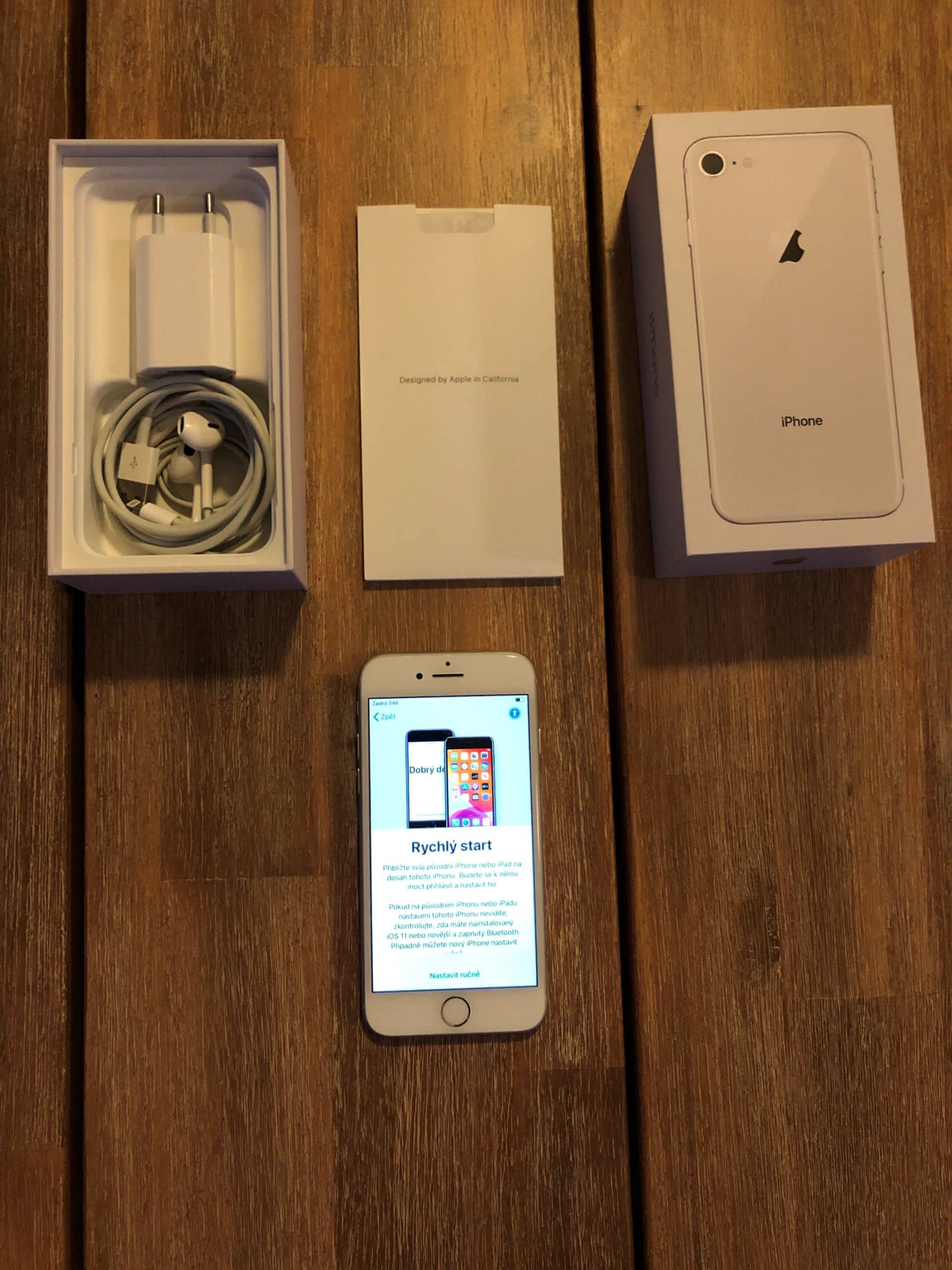 prodám Apple iPhone 8 64gb ve stříbrné barvě zakoupen 16.5.2018 v Euronics.