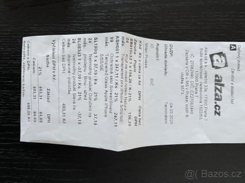 Na průhledné pouzdro a sklo na displeji mám i doklad od koupě a záruku od alza.cz
