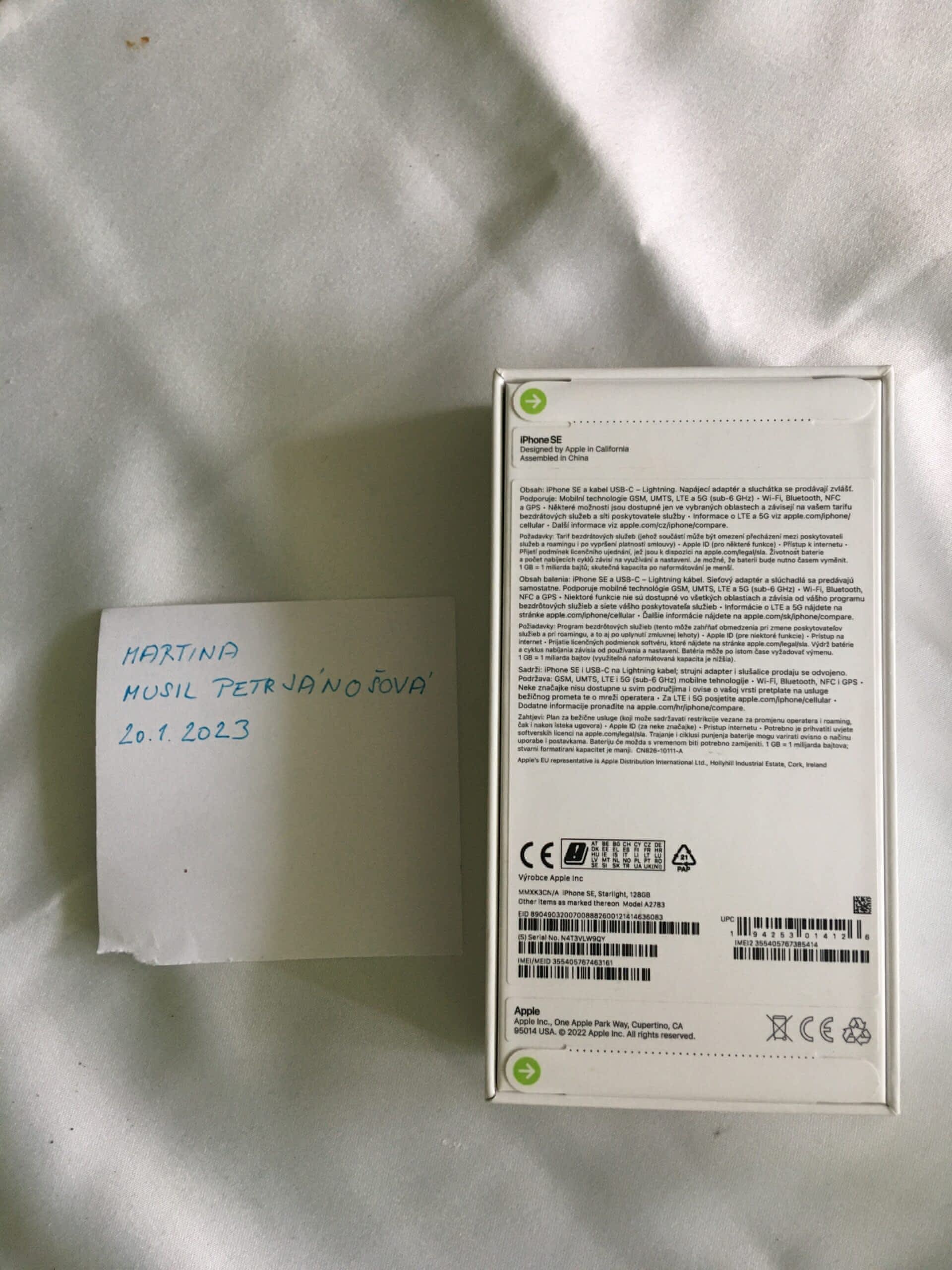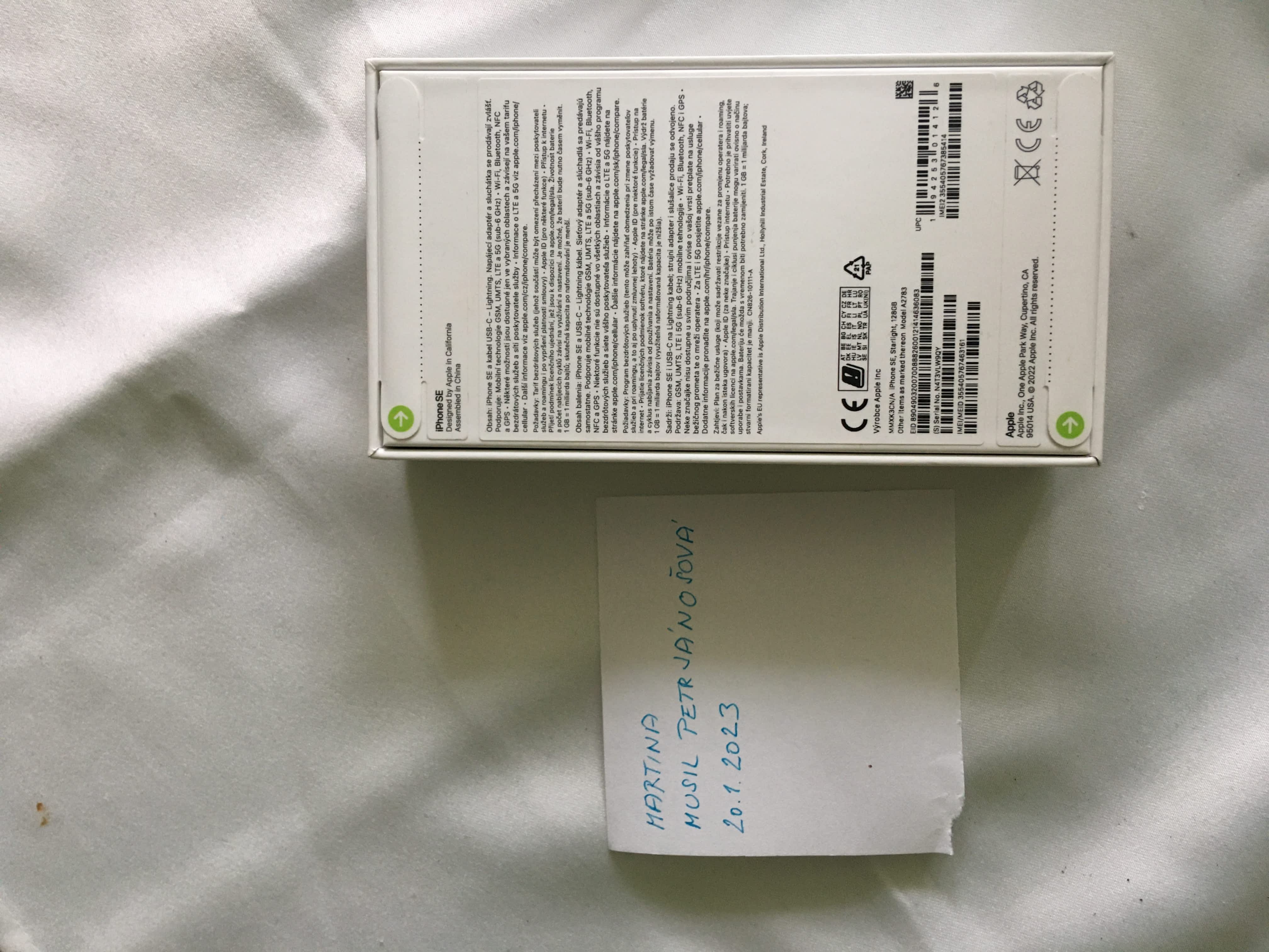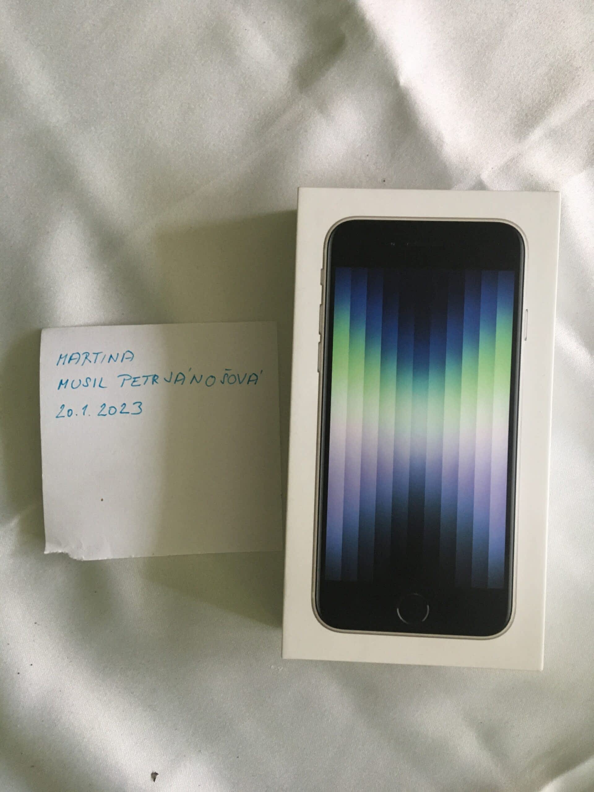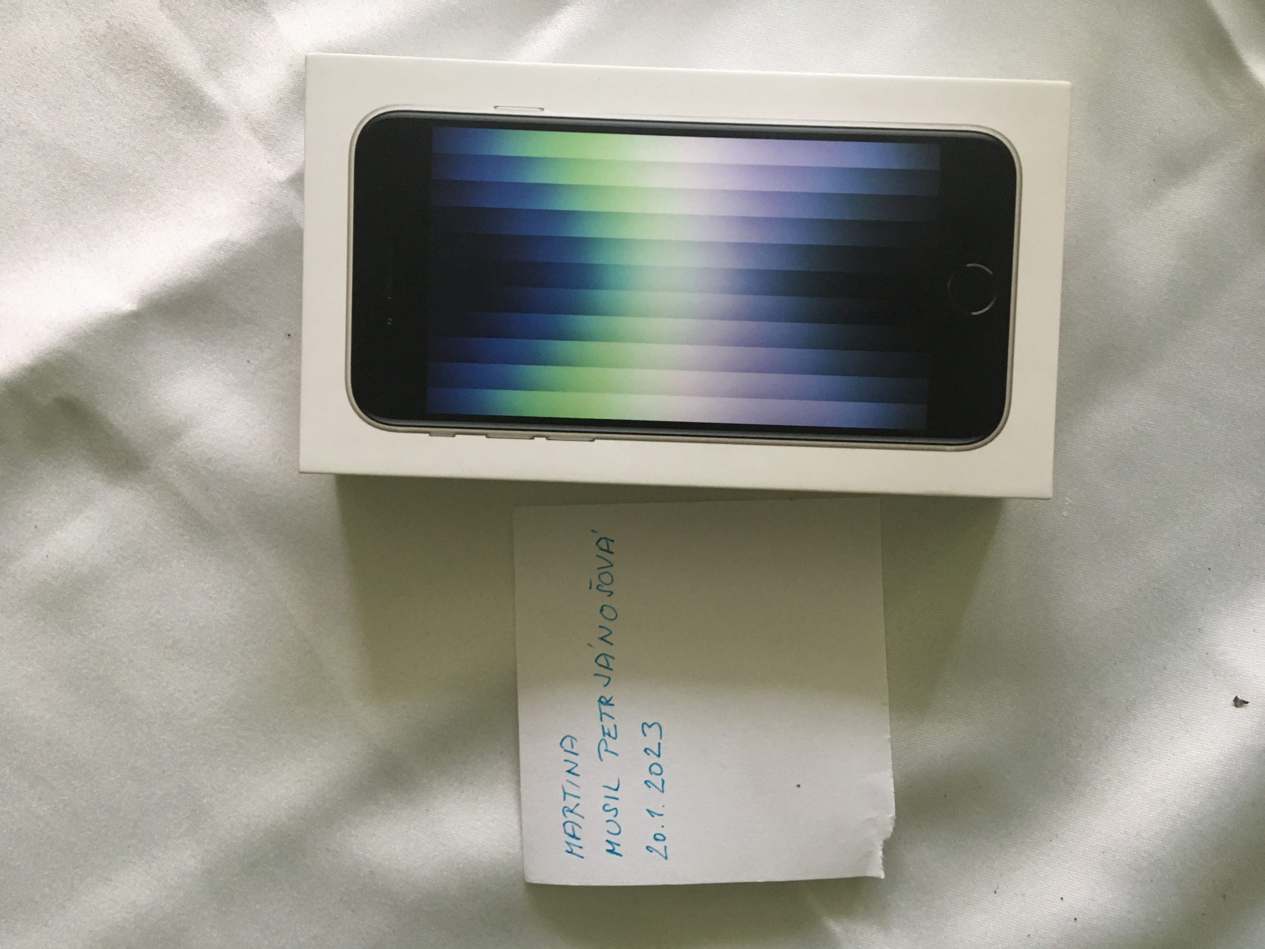 Dobrý den, prodám zcela nový apple iPhone SE (2022) 128GB bílé barvy. Mobilní telefon je zabalen v originální krabičce, ještě nerozbalen. Zakoupen v istyle v prosinci 2022.
