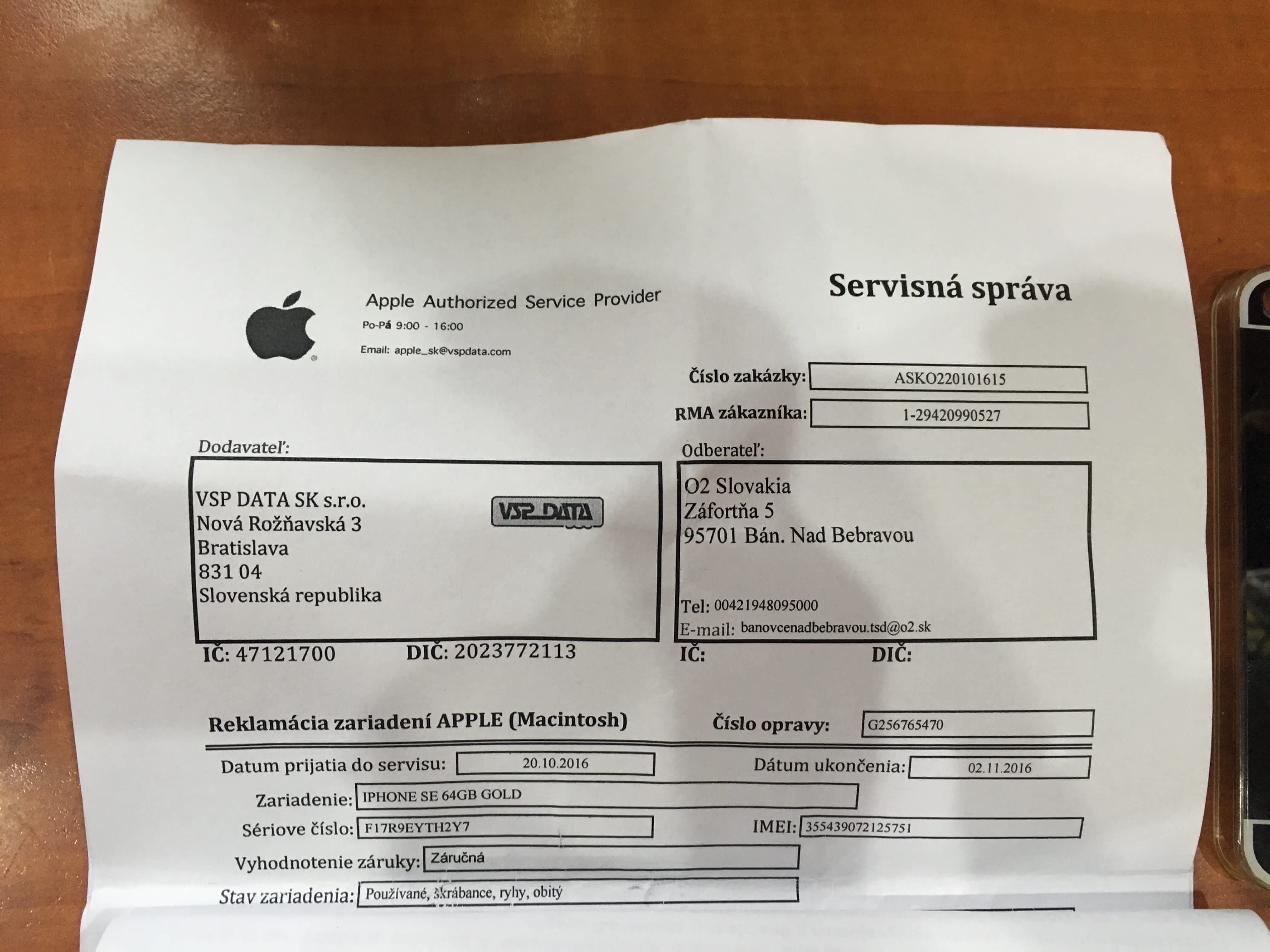 Vymenu teda reklamciu zariadenia dolozim protokolom z opravy !!