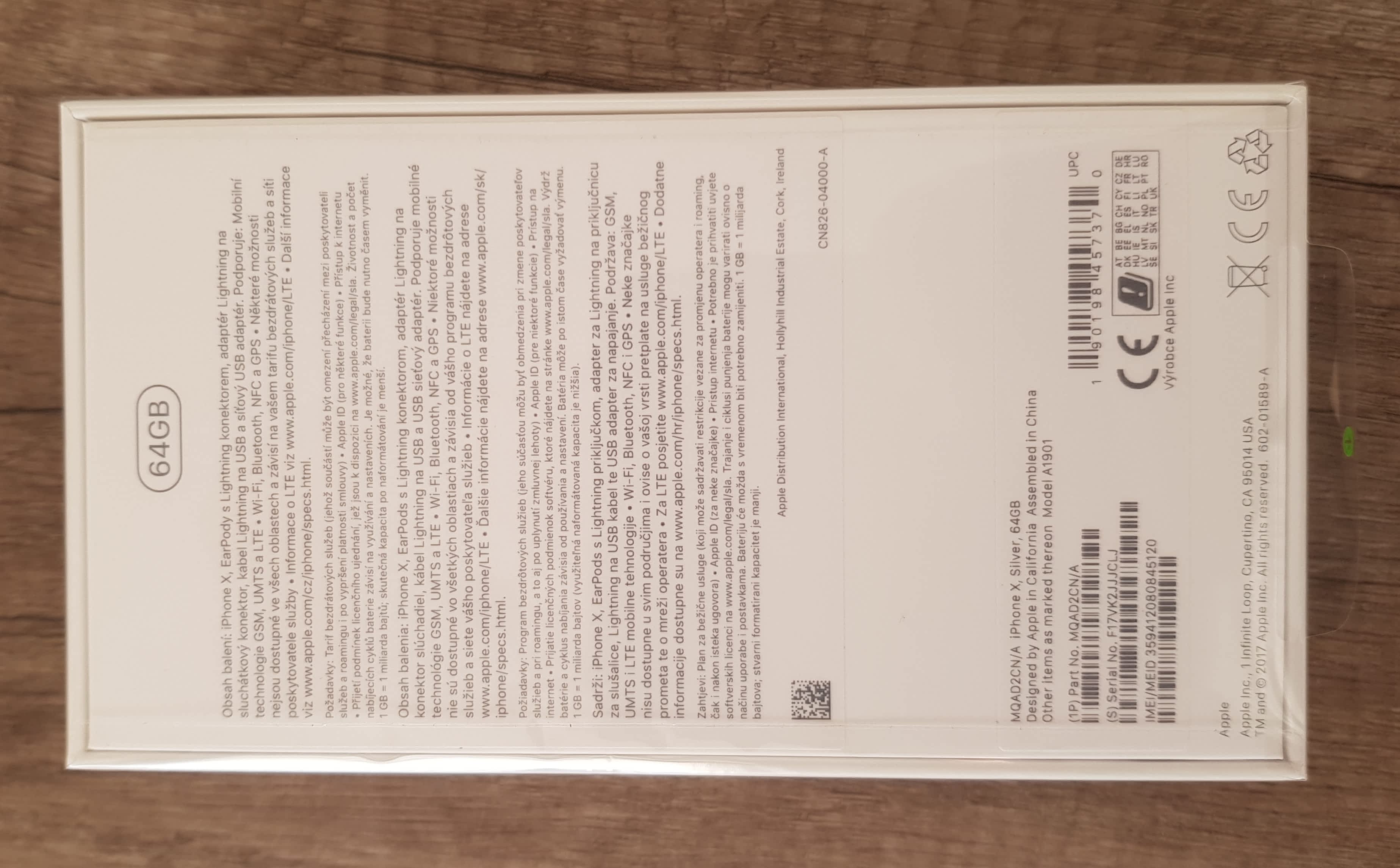 Nabízím k prodeji nový iPhone X 64GB Silver. Kupovaný u Vodafone ČR dne 6.11.2017 – česká distribuce. Telefon je zcela nepoužívaný a originál zabalený (nerozbalovaná krabička a vše kompletní). Záruka 2 roky od Vodafone ČR, včetně originál záručního listu (vydán 6.11.2017). Preferuji osobní odběr v ČB, k dispozici je ihned.