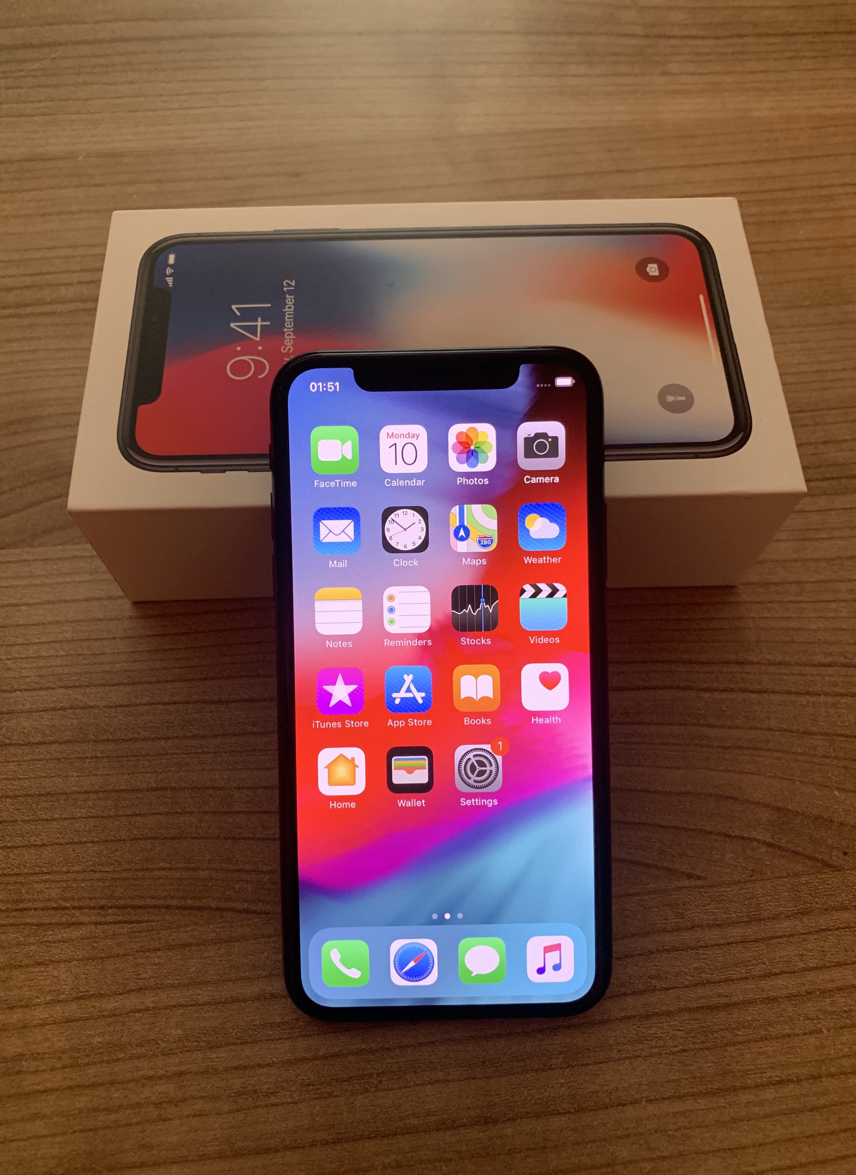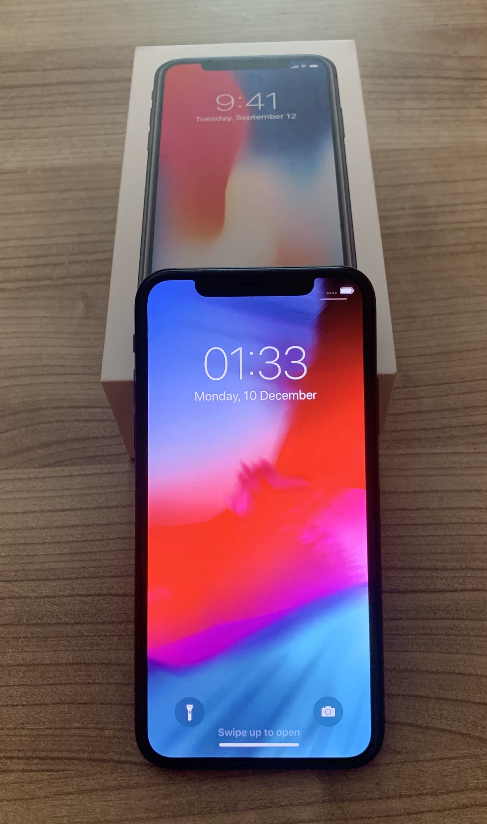 Prodám Apple iPhone X 64GB v barvě Space Grey. Na telefon platí záruka až do června 2019. iPhone je ve výborném stavu – téměř bez jakýchkoliv známek používání – telefon byl nošen v ochranném obalu a na displeji bylo nalepeno tvrzené sklo. Kapacita baterie je stále 99%, viz. foto.iPhone není blokován na žádného operátora a je odhlášen z iCloudu. Součástí balení je telefon, krabička, originální nabíječka a datový kabel. Telefon pouze prodávám, NEVYMĚŇUJI. Preferuji osobní předání v Brně a okolí, aby bylo možno telefon případně vyzkoušet. Cena je pevná.