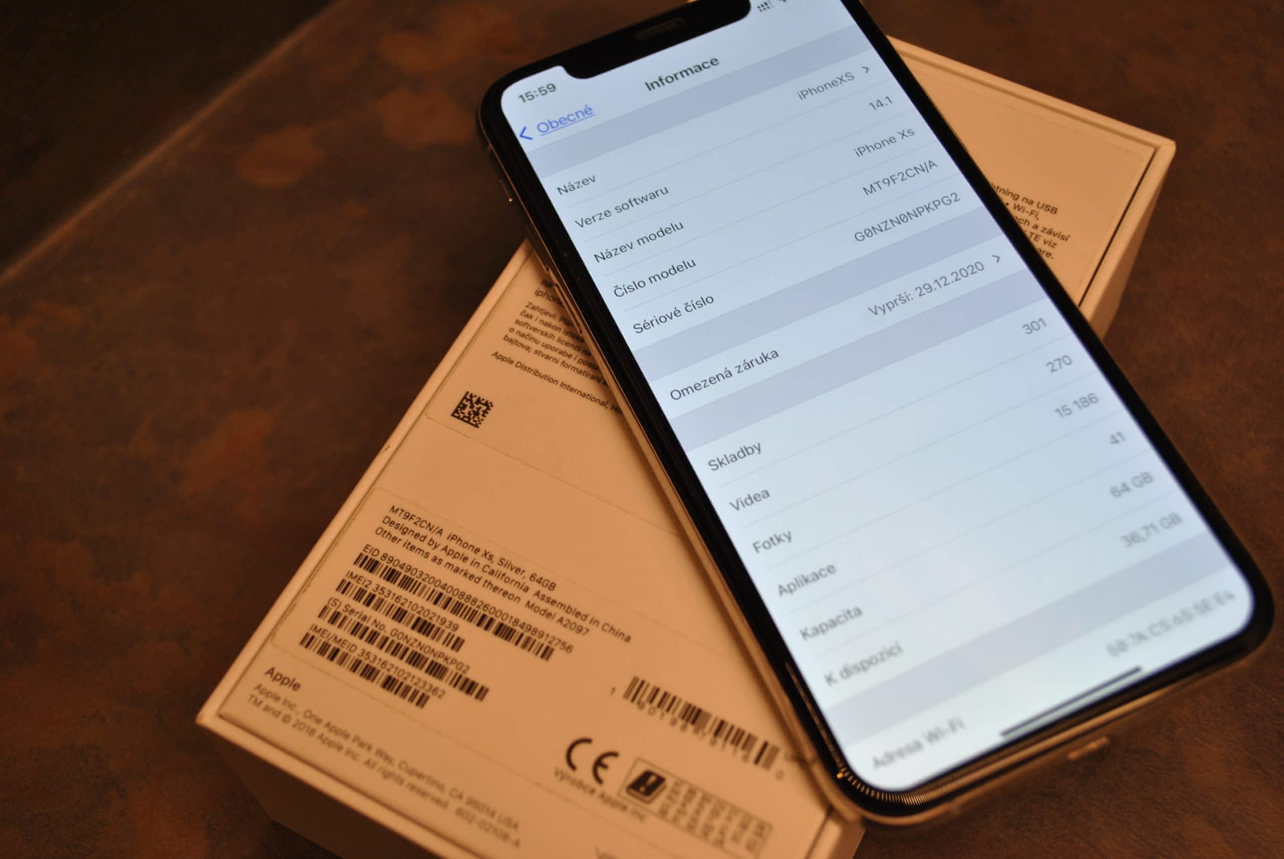 Prodám mobilní telefon Apple iPhone XS 64GB Silver Grey.