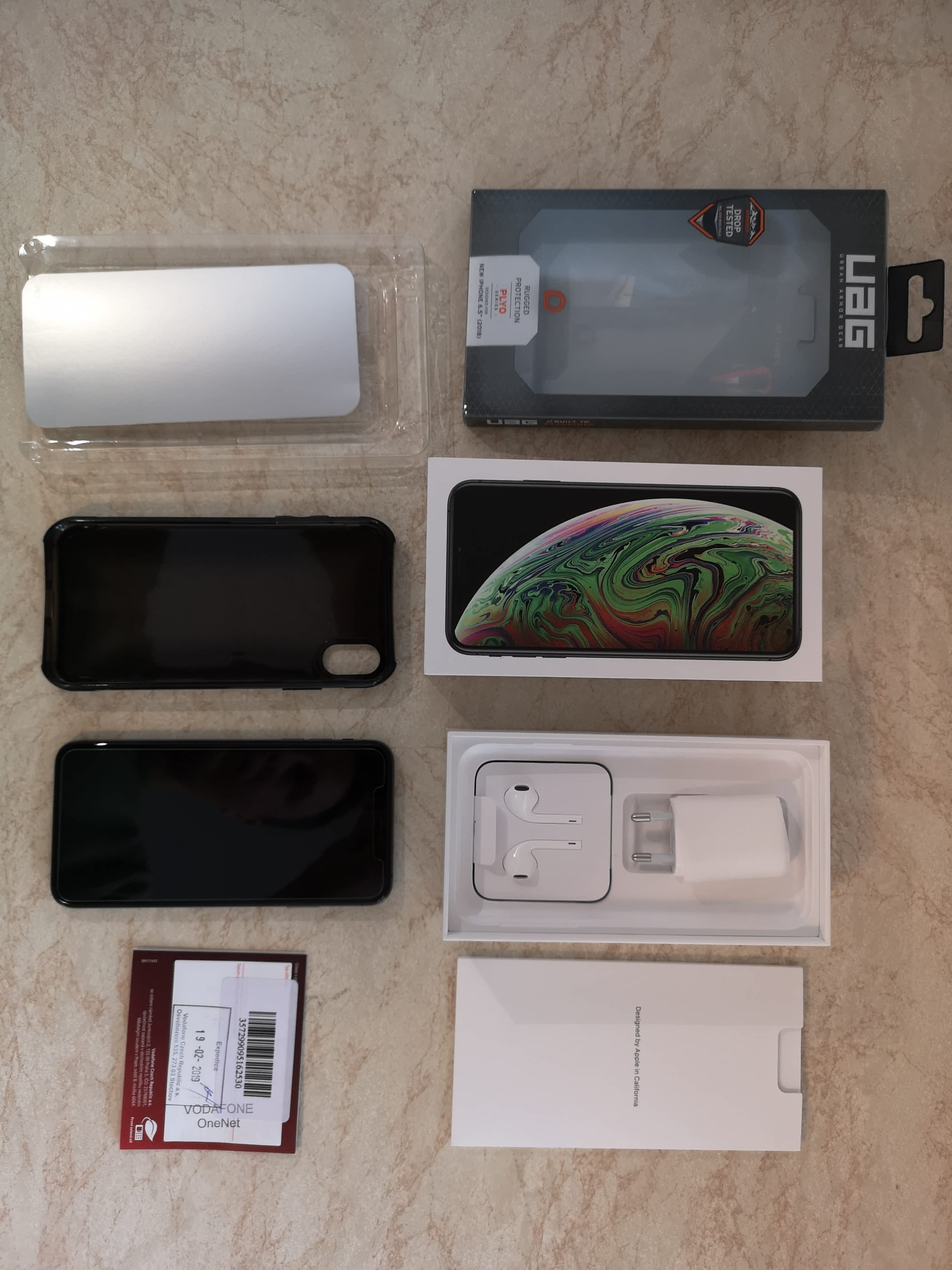 Prodám nový Apple Iphone XS Max 64GB. Telefon je nový, pouze vyzkoušený. Zakoupen byl 19. 2. 2019 ve Vodafonu. Záruka 24 měsíců. Na telefon jsem ihned po zakoupení nechal nalepit kvalitní sklo a zakoupil odolný kryt UAG Plyo (viz níže) a ultratenký průhledný kryt, které přidám k telefonu.