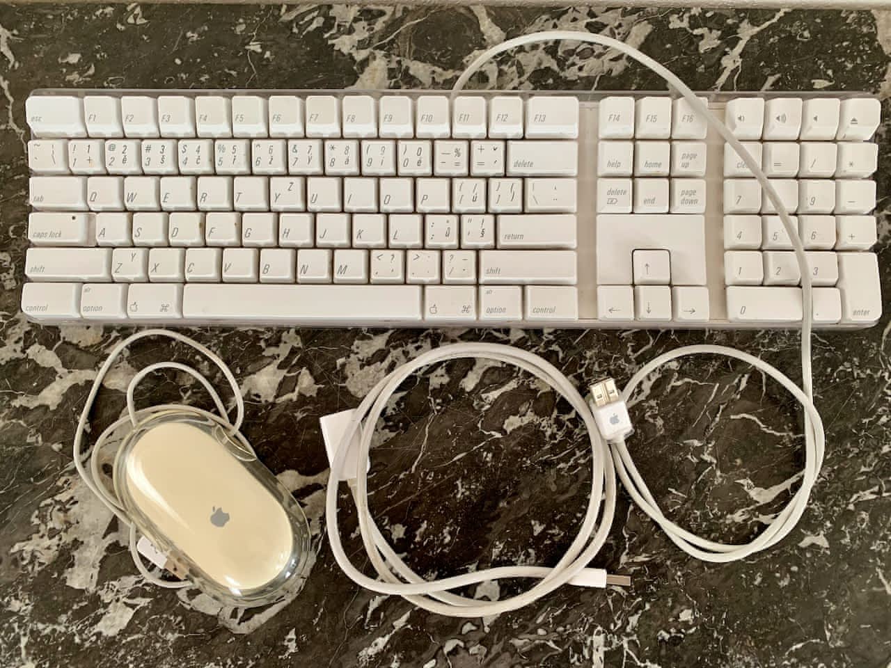 Prodám Apple klávesnici s číselným blokem, českým rozložením a Apple USB prodlužovákem a Apple myš ProMouse