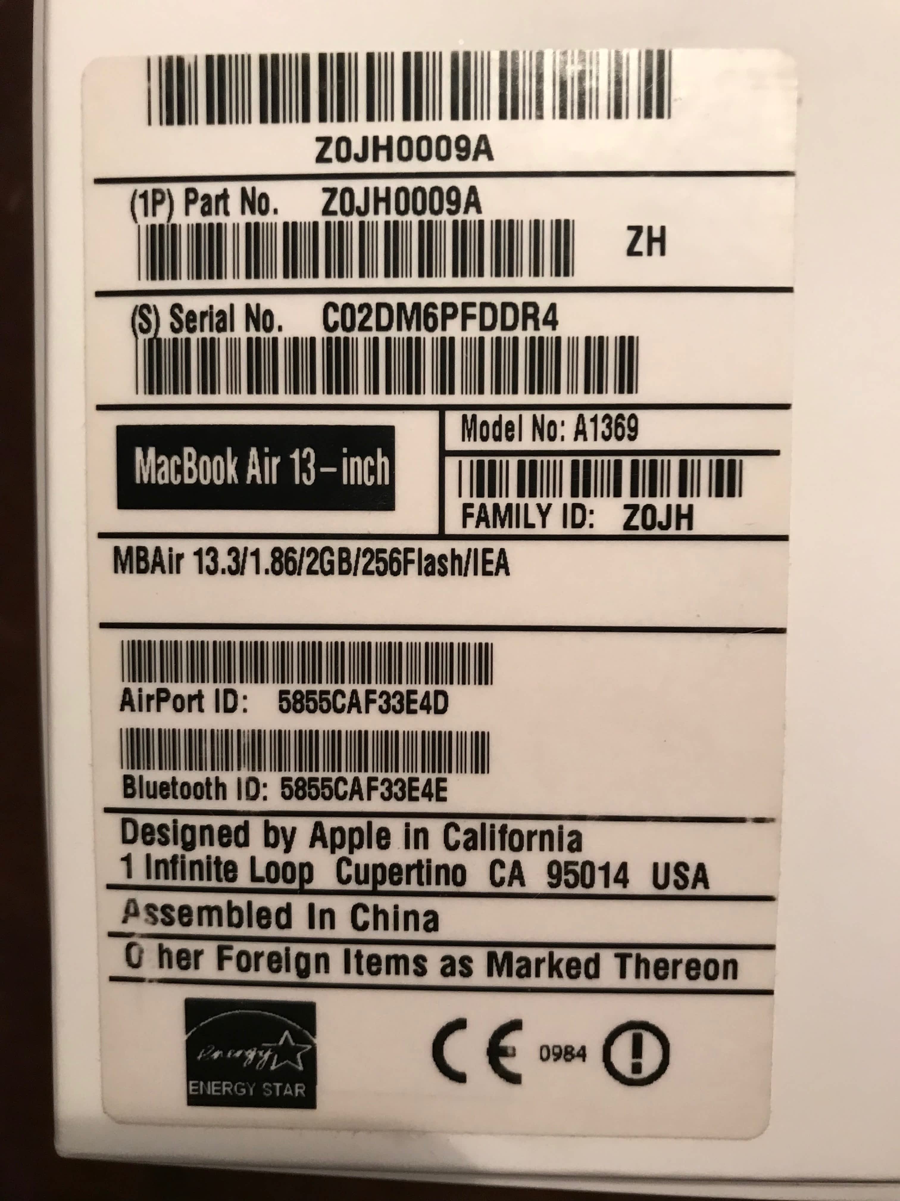 MacBook AIR 13.3"(2010)(č.p.H303):