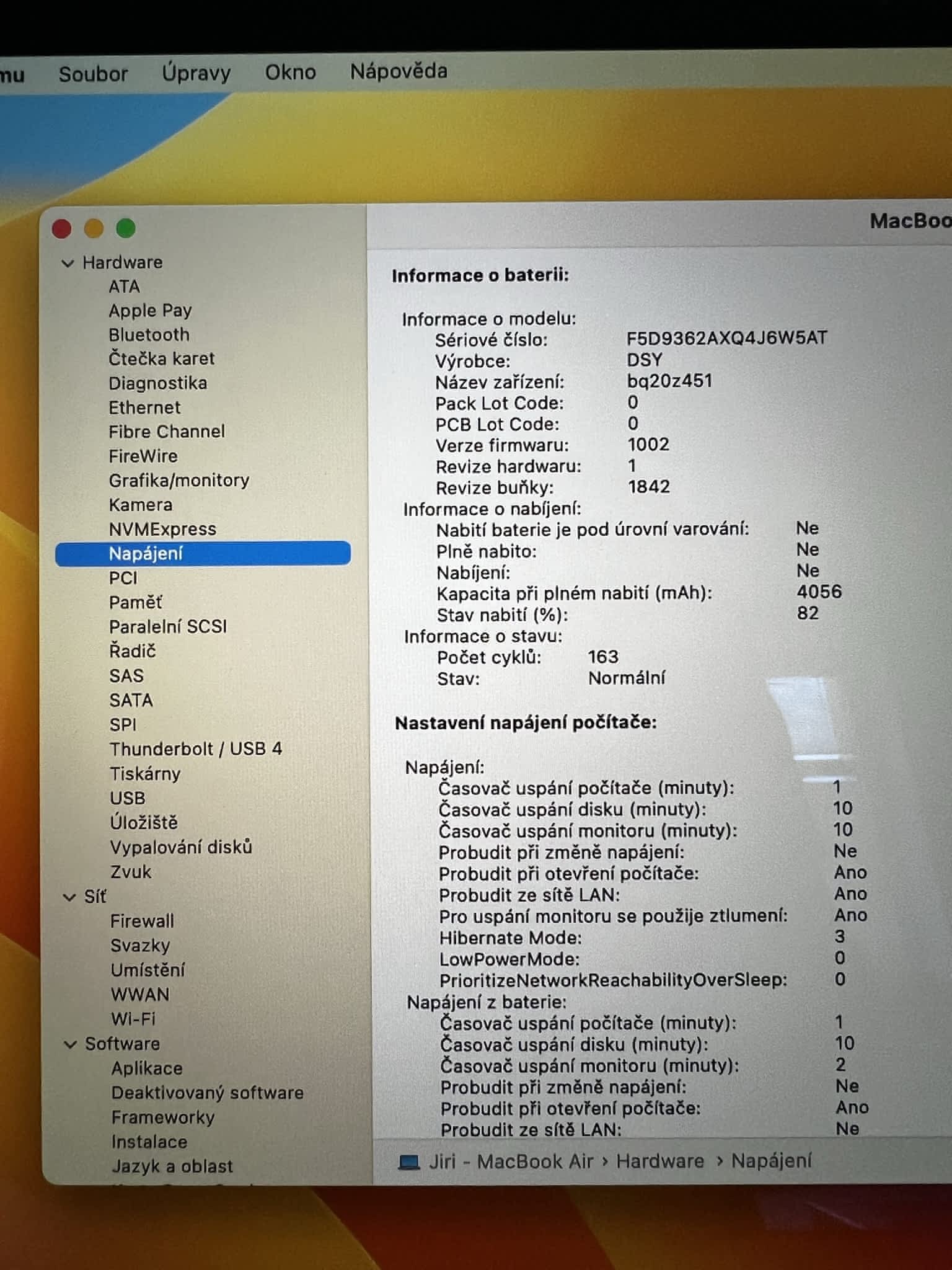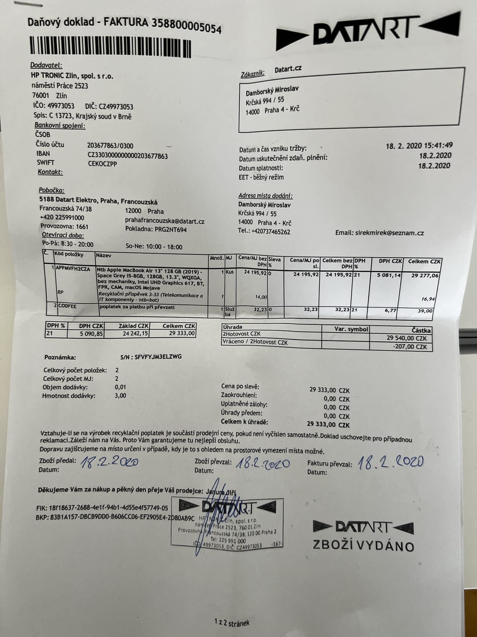Prodám Apple MacBook Air 13 Space Grey, kupován v únoru 2020 v Datartu. (Viz faktura) konfigurace: 128gb SSD, 8gb RAM. Aktuálně nainstalován poslední MacOS Ventura. Bez jediného škrábnutí, používán pouze doma, jako nový. 163 cyklů baterie. MacBook bude odhlášený z iCloudu a smazán. Součástí krabice, nabijecka i fa z Datartu. Pouze osobní předání Lysá nad Labem a okolí, nebo Praha.