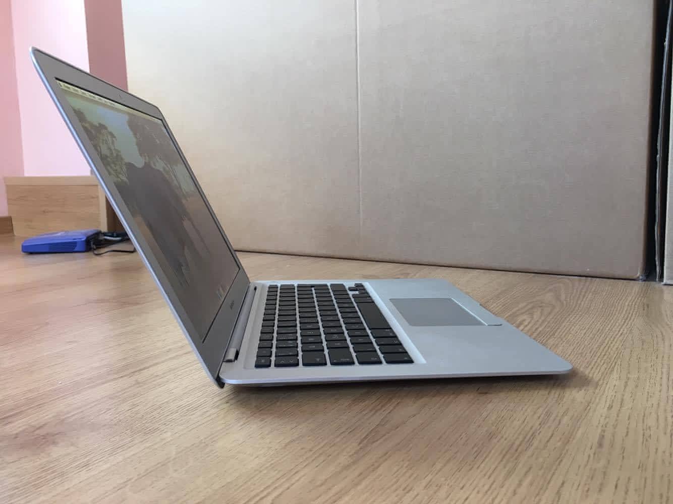 Apple Macbook Air 13.3" (model 2008 late) / 1.6 GHz intel Core2Duo / 60-80Gb (teď si nejsem jistý) /Ram 2GB / NVIDIA Geforce 9400M 256MB / Výdrž na baterii cca. 3-4h