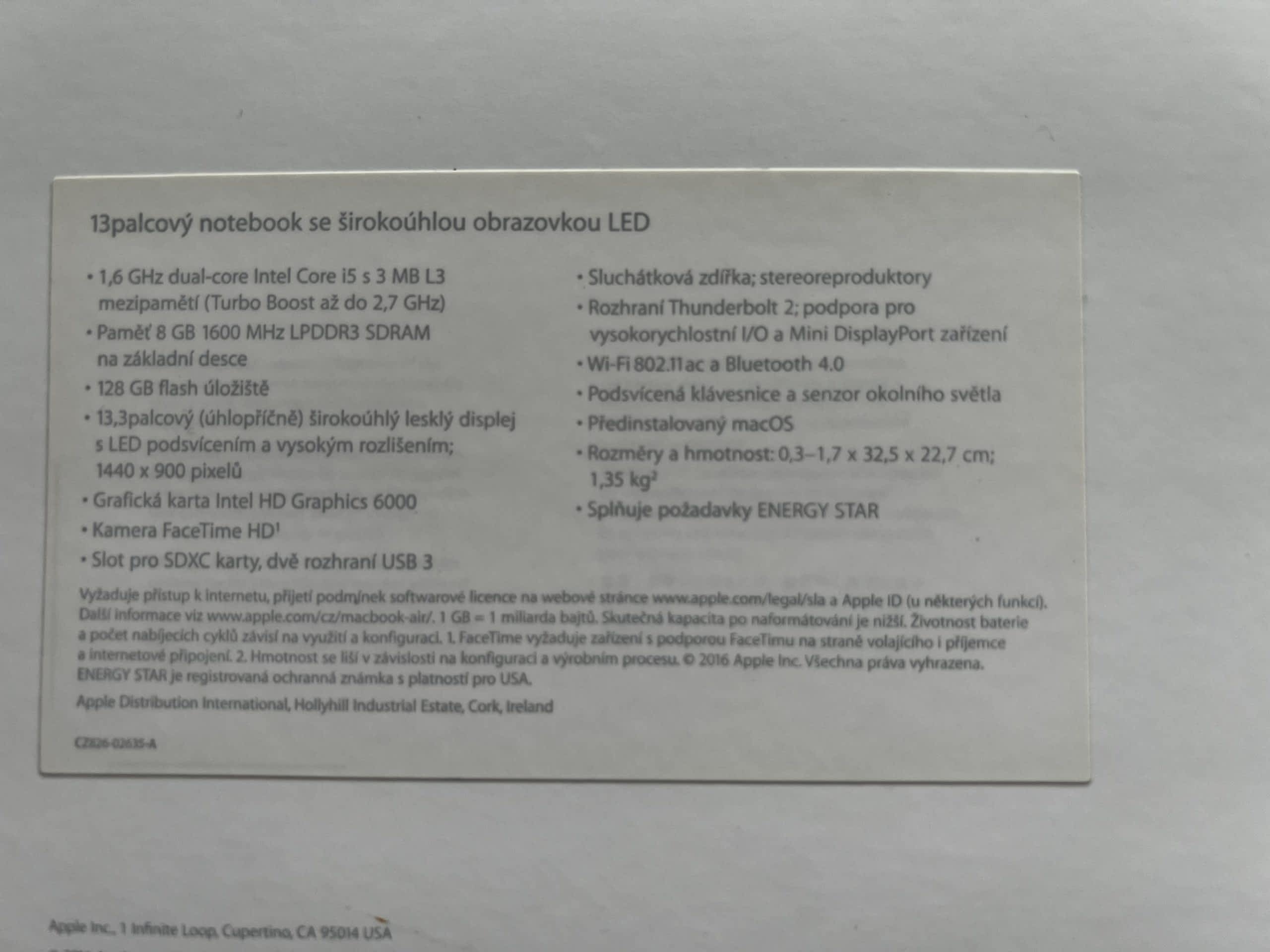 Prodám MacBook Air 2015 13,3" v perfektním stavu, počítač není nikde žádným způsobem poškozen nebo poškrábán. Kupován jako nový v eshopu Alza.cz. K počítači je veškeré příslušenství.