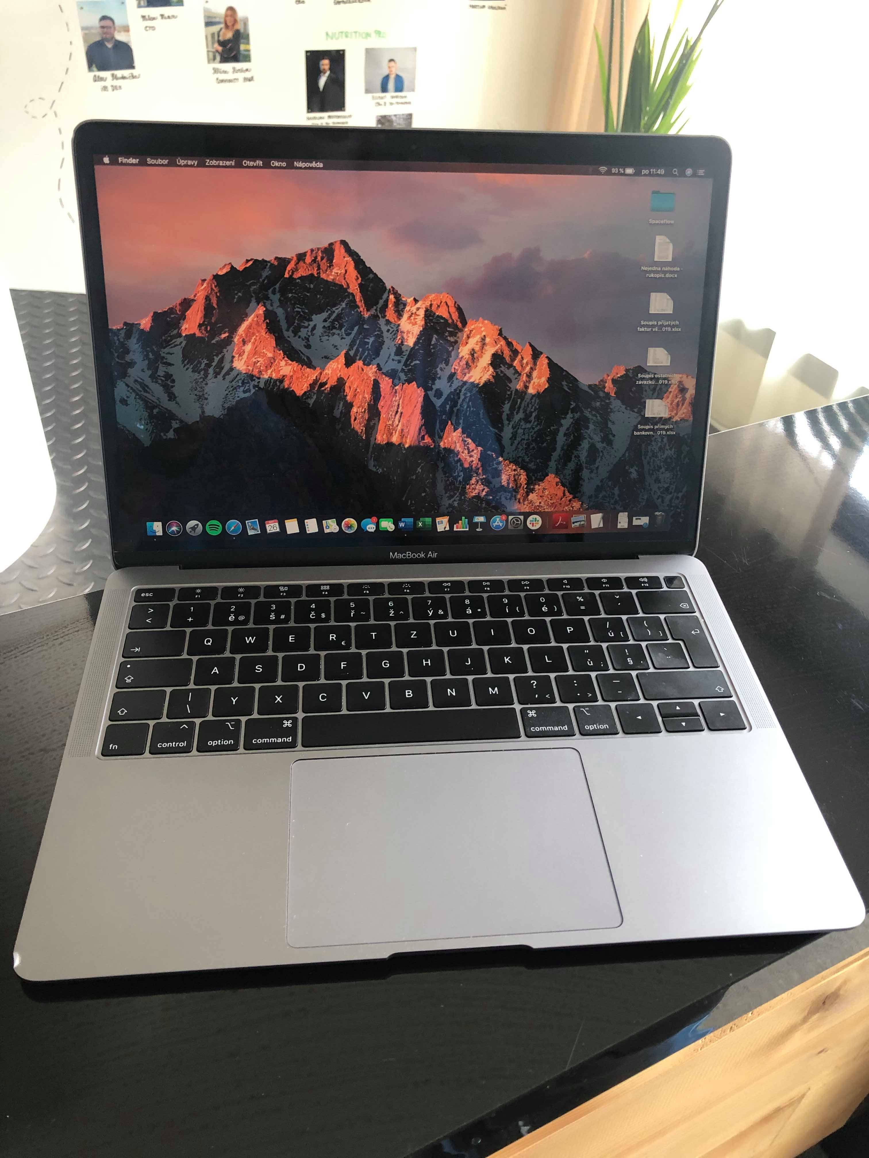 Apple MacBook Air 13" Retina CZ Space Gray 2018. Kompletní balení. Stav jak nový, malá oděrka na levém rohu viz foto. Záruka iStyle 11/2018-11/2020. Počet cyklů 111.
