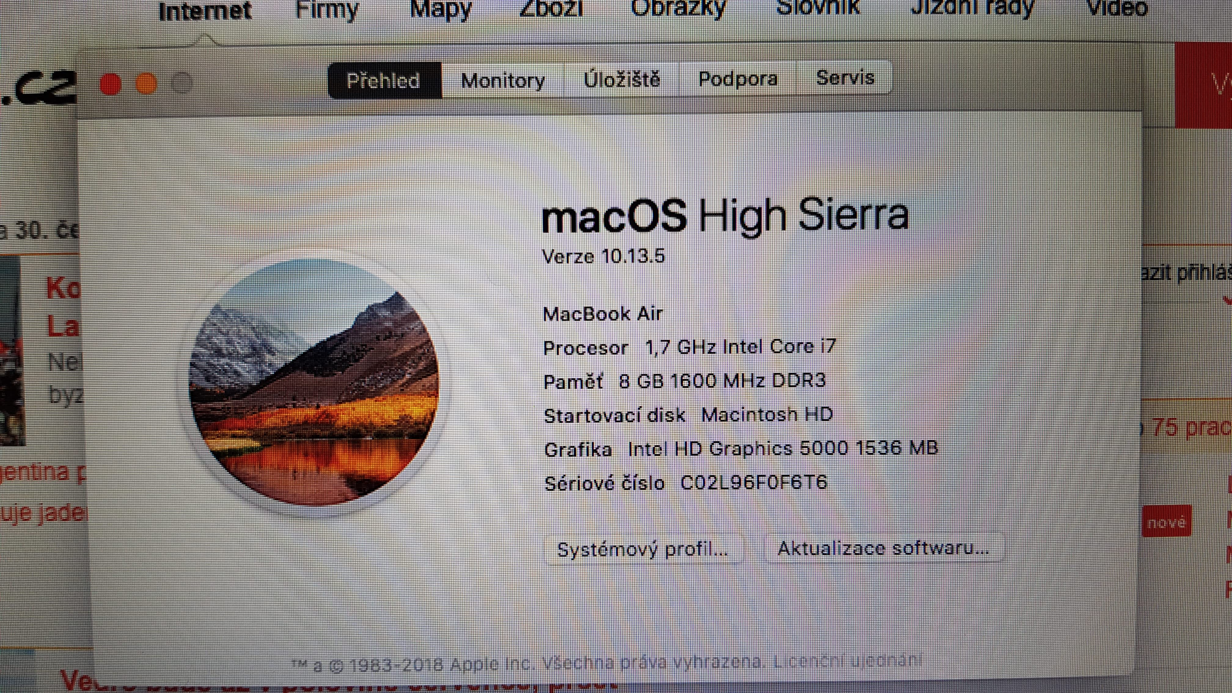 Custom build Apple Macbook Air 13" 2013 s doplatkovým procesorem Core i7 a doplatkovou pamětí 8 GB, větší disk SSD 256 GB. Díky silnějšímu procesoru zvládá jakoukoli práci (běžně dva prohlížeče se spoustou záložek, Word, Excel, iTunes, emailový Thunderbird atd.). Česká klávesnice, baterie vydrží přes 5 hodin. Včetně originální krabice. Důvod prodeje, mám již Macbook Pro.