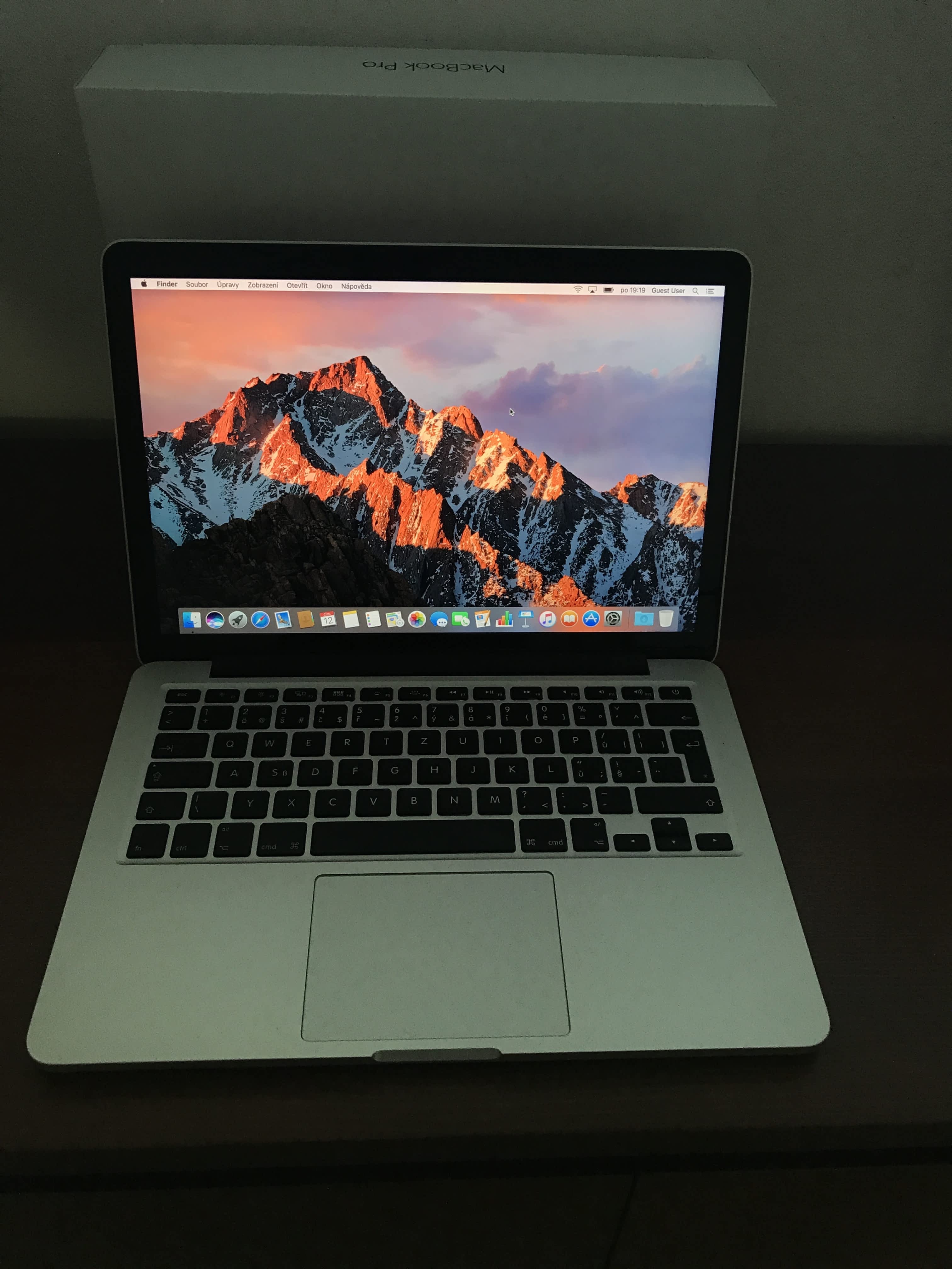 prodám Apple Macbook Pro 13" 2015, koupený 8.1.2016 v iStores. Tedy záruka do 8.1.2018 – tedy ještě 7 měsíců.