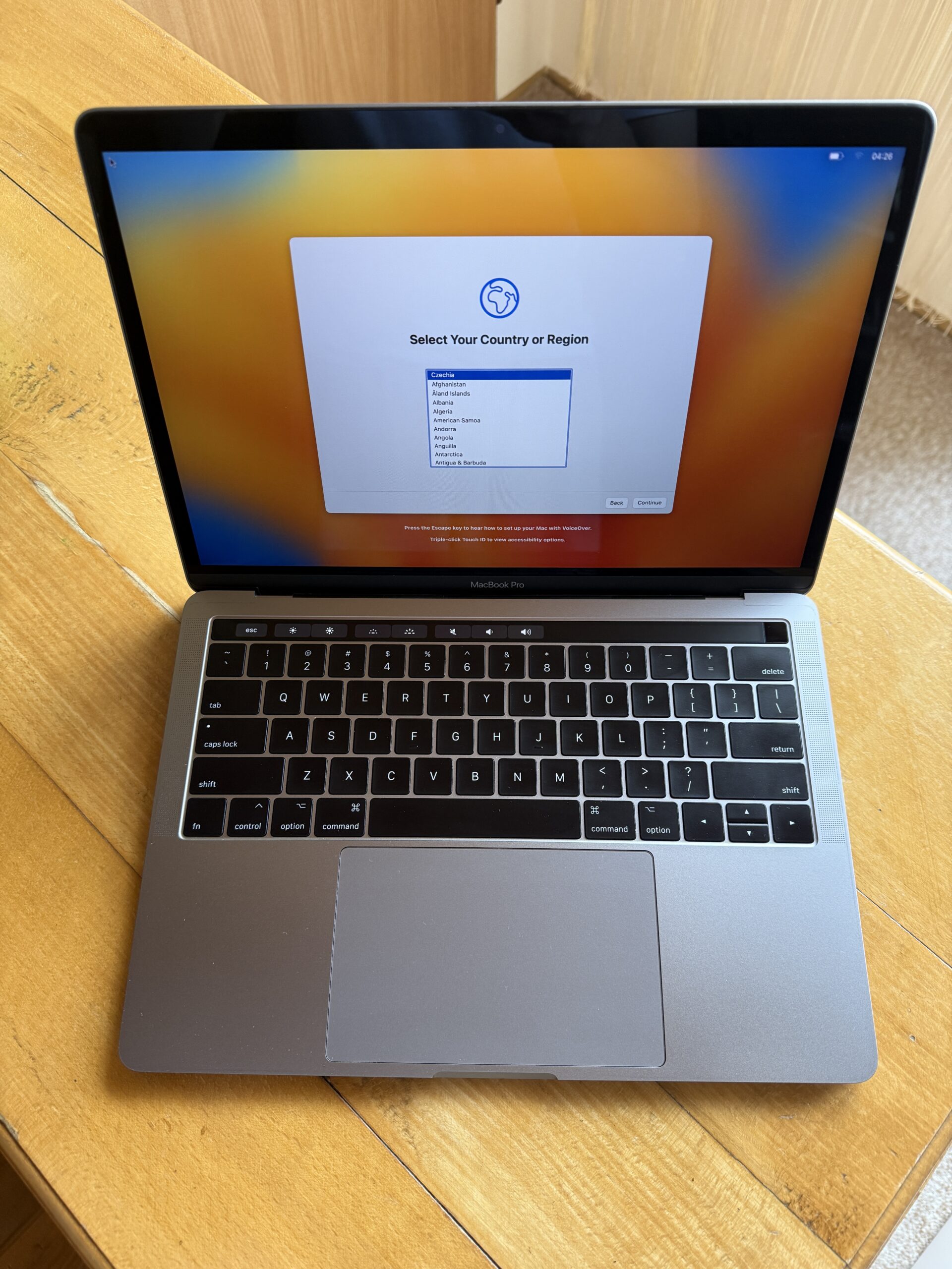 Macbook Pro 13" (2017) Touchbar. Dobrý stav (lehké známky opotřebení – tělo, displej) – používán s externí klávesnicí a trackpadem.