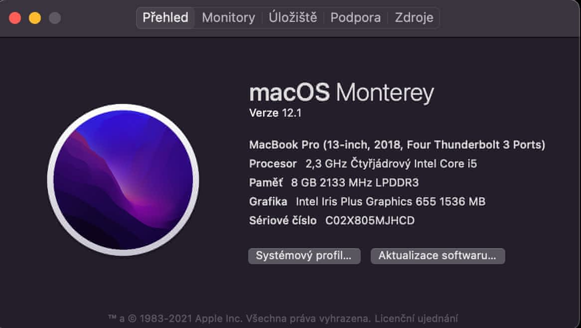 2,3GHz čtyřjádrový Intel Core i5 osmé generace, Turbo Boost až 3,8 GHz