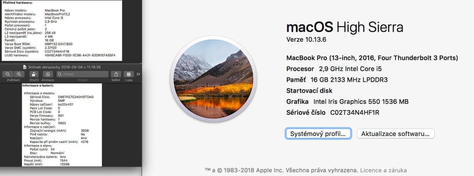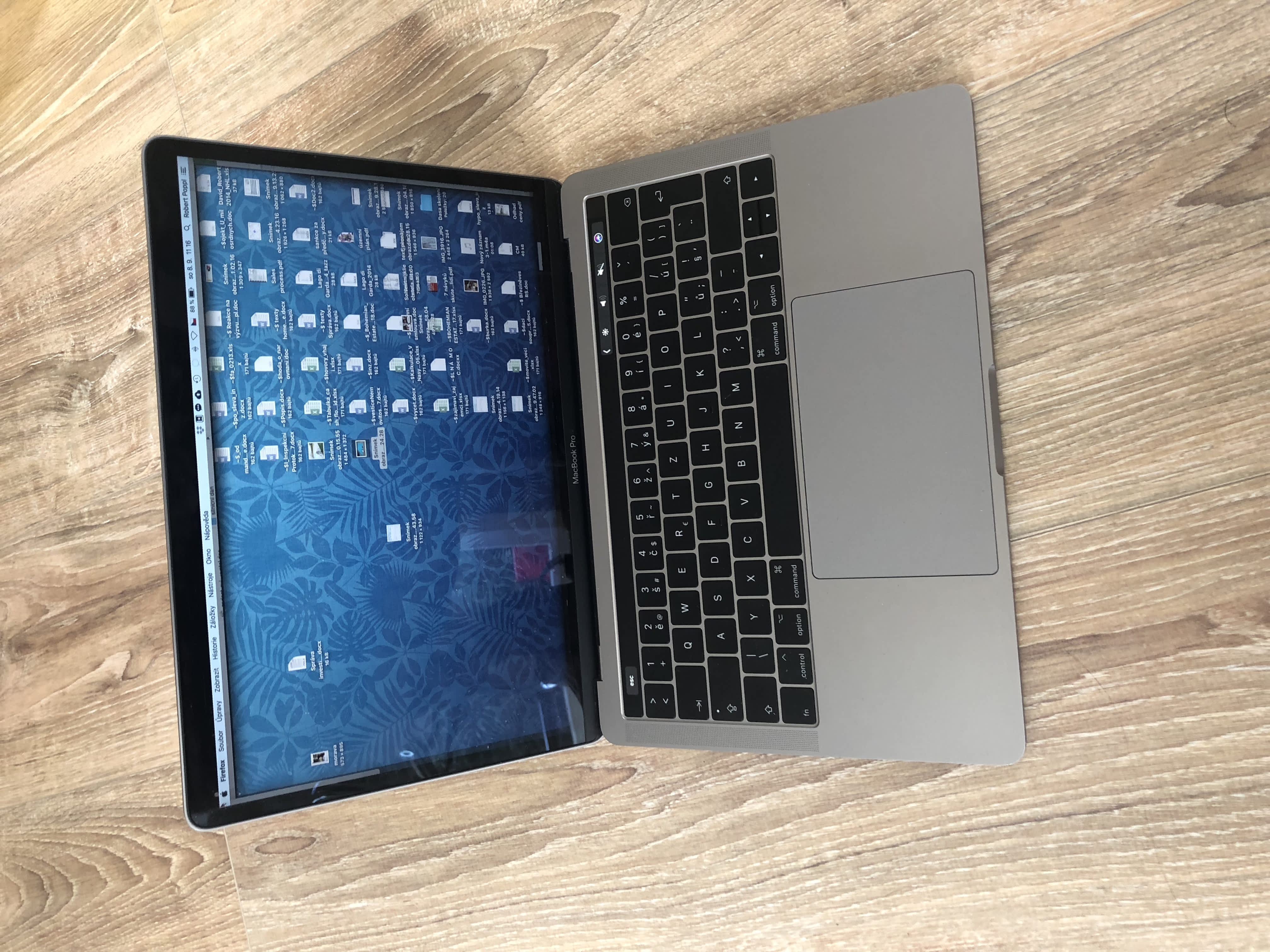 Prodám MacBook Pro 13‘‘ Retina s Touch Barem, vesmírně šedý, ve skvělé konfiguraci – 2,9 GHz i5, 16GB RAM, 512GB SSD, atd. Koupen nový 2/2017 v ALZe. Ve 3/2018 mi byla v reklamaci vyměněna klávesnice (celý spodní díl v ceně 25tis.Kč!), jež je tedy v perfektním stavu. Bohužel jdu zkusit nový model .-) Pouze osobní předání. Rád po
