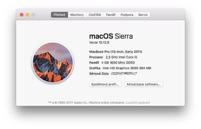 Prodám MB Pro s úhlopříčkou 13” – model Early 2011. Procesor i5 2.3GHz, 4GB RAM, 500GB HDD, česká klávesnice. Na baterie vydrží běžet cca 2 hodiny. Na počítači je čistý OS X 10.12.6. Počítač je včetně napájecího zdroje. Počítač je možno po dohodě vidět a vyzkoušet v Brně. Inzerát platí do smazání.