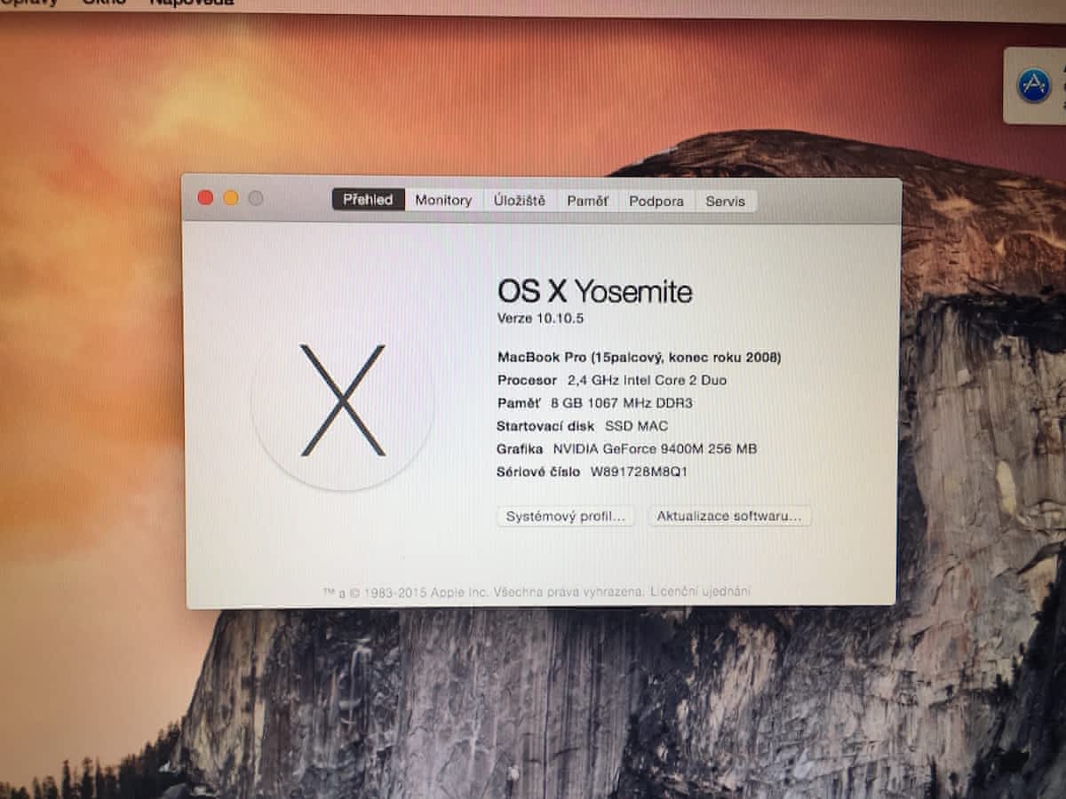 Prodám MacBook Pro 15, model late 2008, 2,4 GHz Core 2 Duo