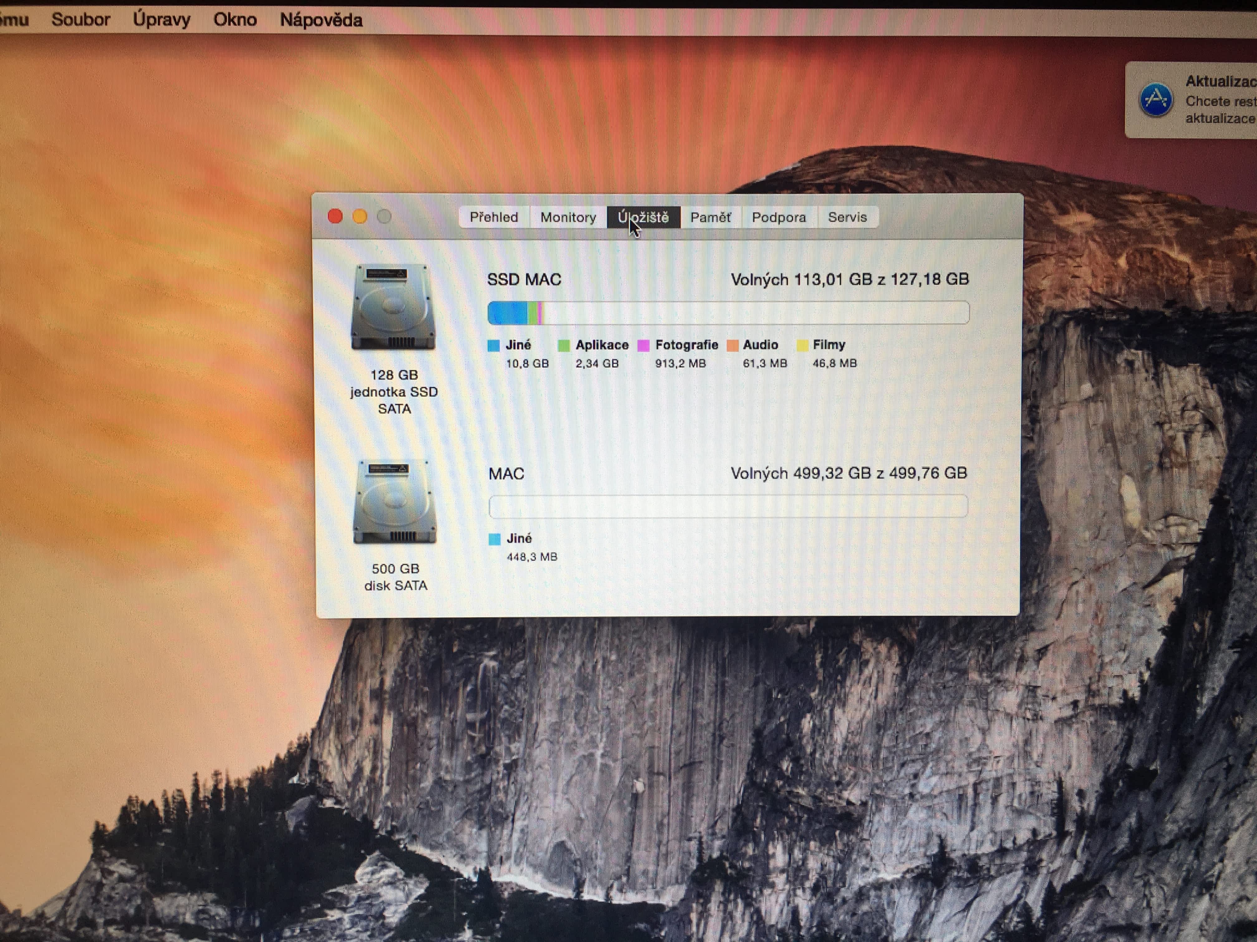 Osazený SSD diskem 128GB + místo CDROMky disk 500GB