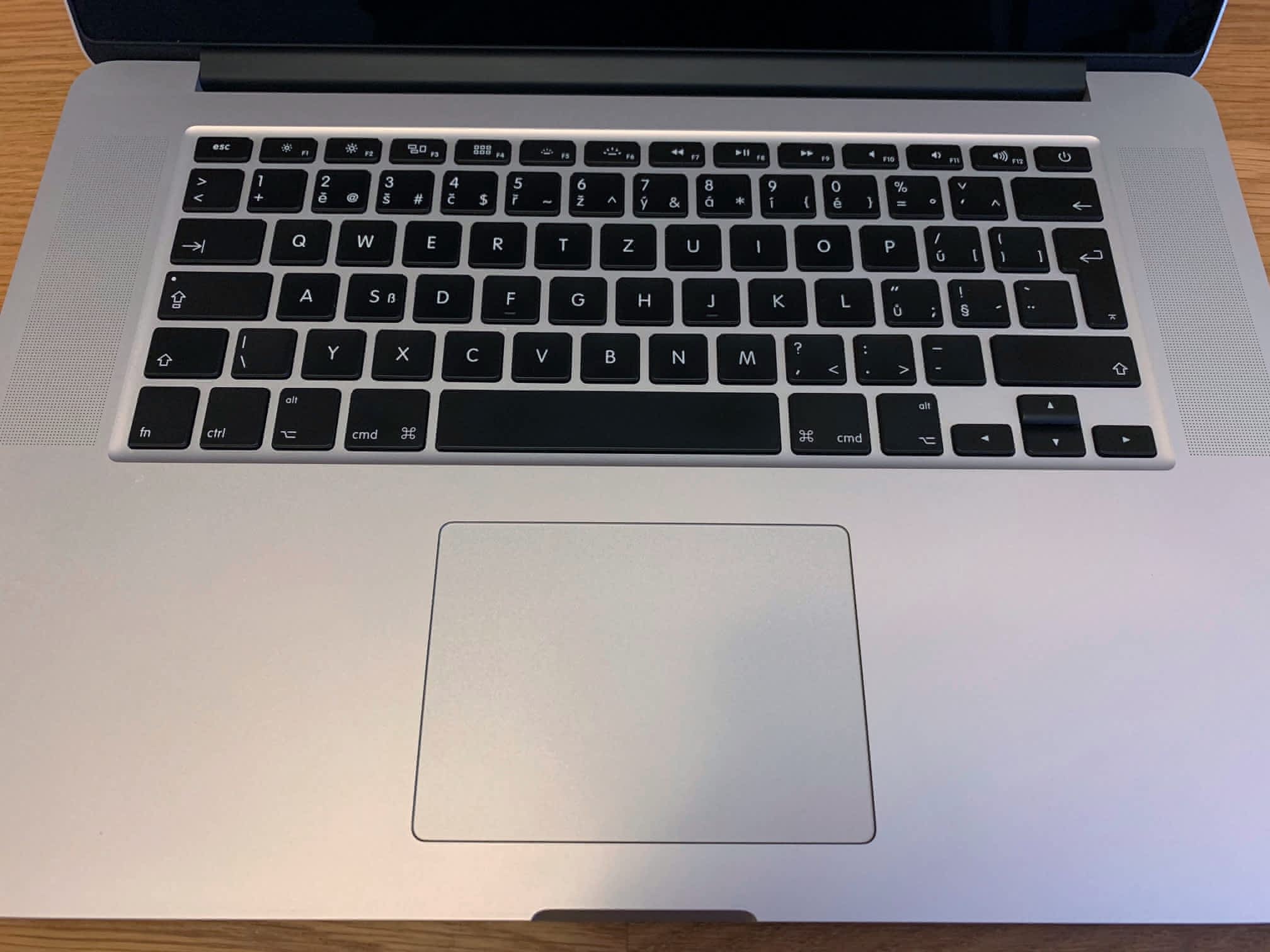 Prodám Apple Macbook Pro 15", Retina, Mid 2015, 2.2GHz Intel Core i7, QuadCore, 16GB RAM, 256GB SSD, Intel Iris Pro 1536MB. Poslední model Macbooku se všemi vstupy. Stav 10/10 – notebook je bez jakýchkoli známek použití, včetně klávesnice, byl používaný zavřený s externí klávesnicí a myší. Nebyl skoro nikdy přenášený a většinou byl připojený ke zdroji, proto je i baterie v perfektním stavu a v tuto chvíli má 91 cyklů. Nebyl nikdy opravovaný, ani rozebíraný. Macbook byl kupovaný v Mall.cz, má českou klávesnici. Cena 35.000 Kč.