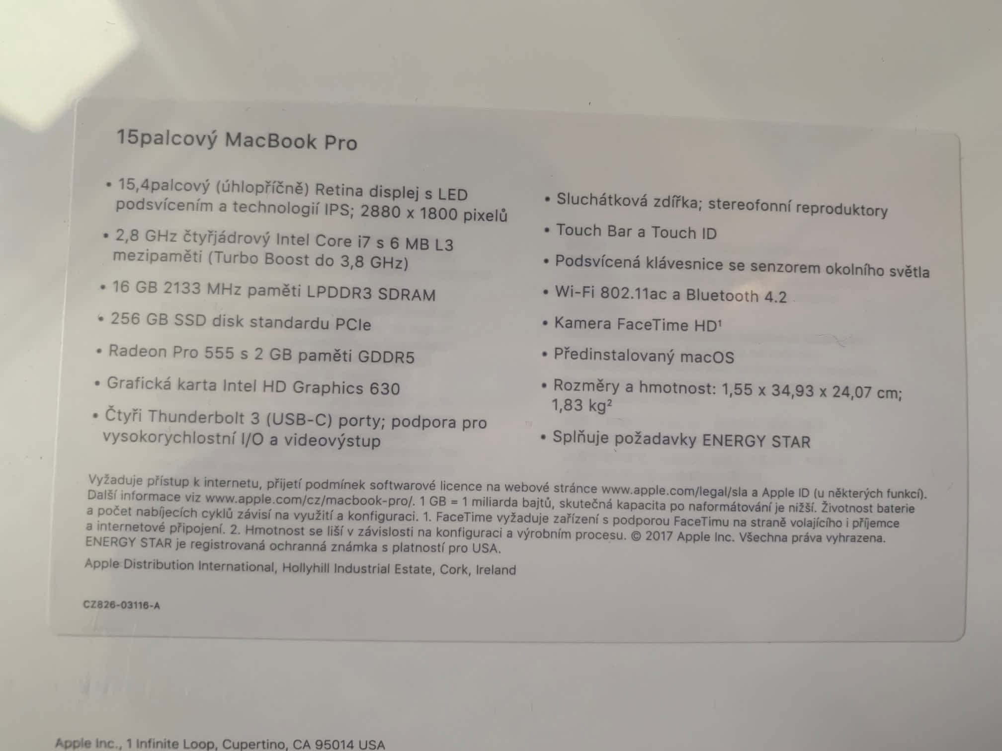 Dobrý den, prodám nový, nevybalený, MacBook Pro s Touch barem. Koupený v ČR na firmu, s českou klávesnicí. Záruka Apple 1 rok od aktivace. Plus Apple bezdrátová myš a Thunderbolt adaptér. Preferuji osobní předání Praha