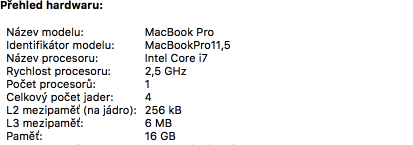 prodám MacbookPro 15,rok výroby 2015 v záruce ještě pár měsíců.