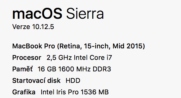 i7 2,5GHz,grafika Intel iris pro 1536MB a AMD radeon R9 M370X 2gb,,perfektní na práci:střih videa,editace apod,16gb ram,512GB SSD, záruka do 9.10 2017