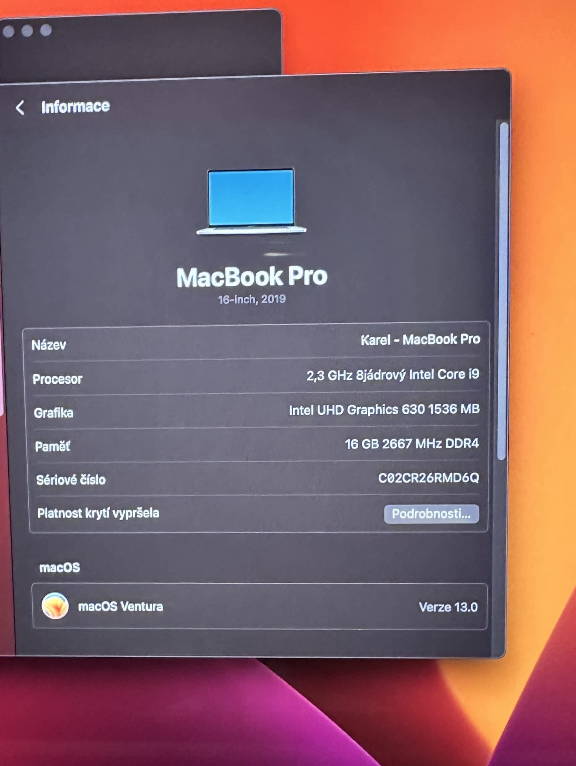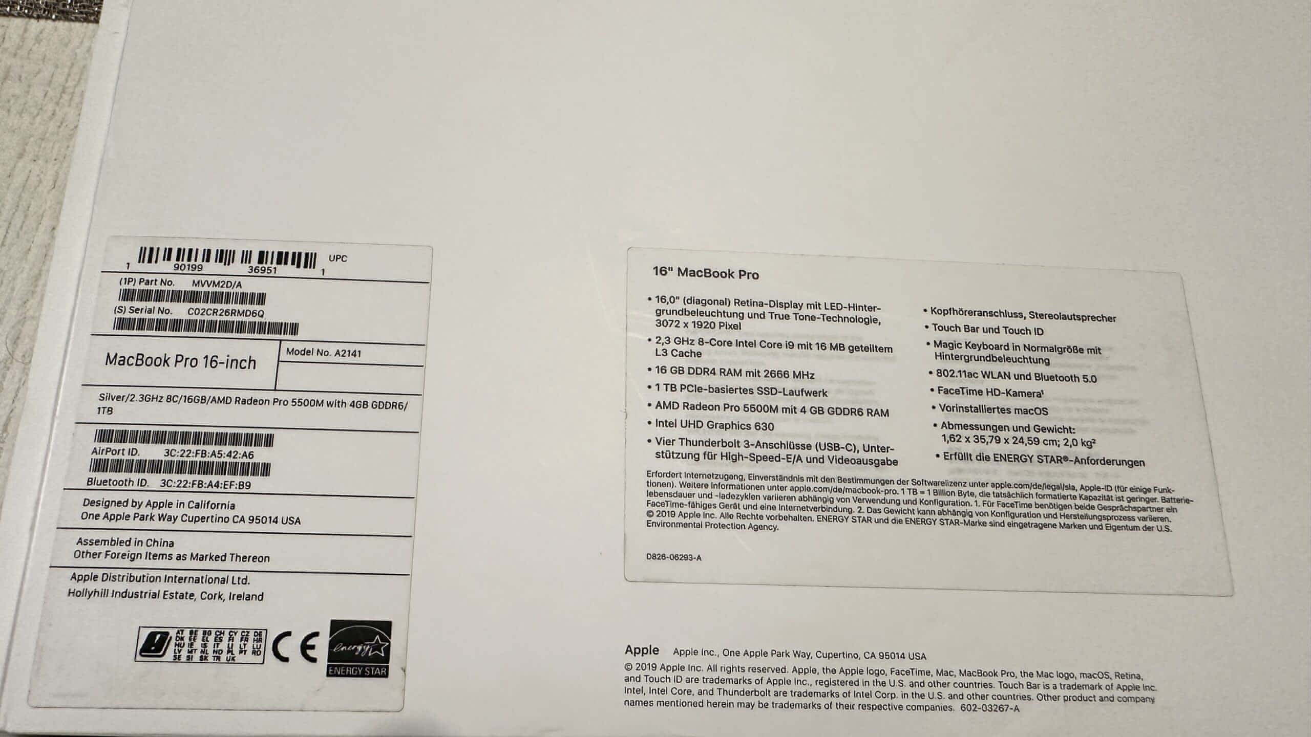 Prodám CTO 16" Apple MacBook Pro i9 2,3GHz OctaCore (8-mi jádro)model 2019. Ram 16Gb DDR4 2677MHz SSD 1Tb,MacBook je TOP STAV,ve stavu NOVÉHO,nikde ani šktábanec,komplet balení jako na foto, BlueTooth 4.0, 4x Thunderbolt 3 /USB-C, FaceTime HD WebKamera, Force Touch trackpad. TocuBar s čtečkou otisků prstů.AKKU POUZE 151 CYKLÚ