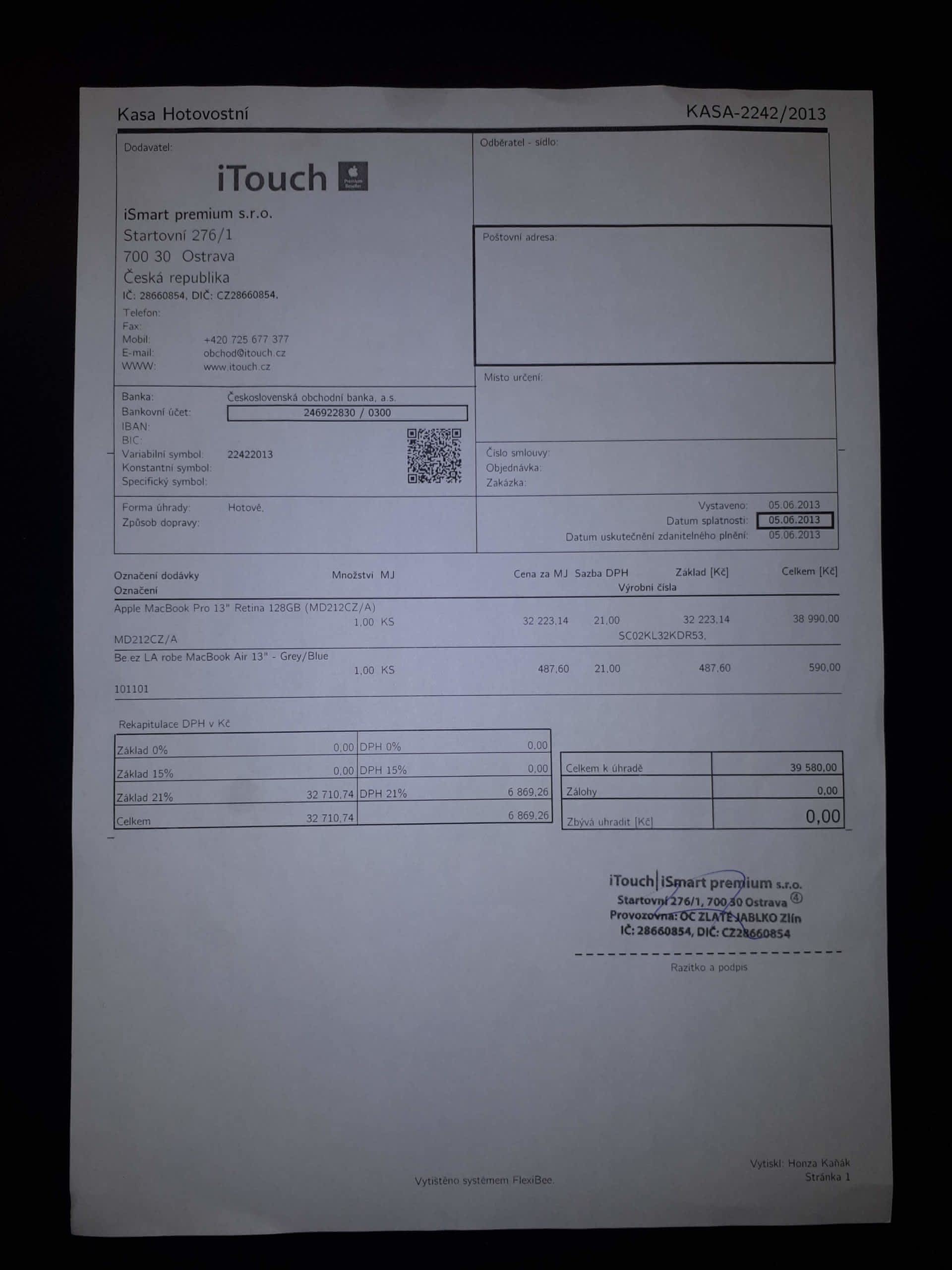 prodám Apple MacBook PRO RETINA 13” – ročník 2012 Late. Naprosto skvělý stav! Rychlý 128 GB SSD disk a 8 GB RAM paměti. Tento model již s vynikajícím displayem RETINA. Integrovaná výkonná grafická karta Intel Iris 1536 MB. Díky vynikajícímu odladění MAC OS systému tento MacBook PRO v plynulosti jasně předčí i nové notebooky s WINdows. Je to spolehlivý Apple notebook do práce nebo do školy. Tento model je ještě s NAPROSTO BEZPROBLÉMOVOU klávesnicí (narozdíl od některých i novějších řad MacBooků PRO); Procesor Intel Core i5 2.4 GHz ("Haswell"); RAM: 8 GB RAM; SSD: 128 GB; Grafická karta: Intel Iris – 1536 MB; Klávesnice: Česká; Tento Apple MacBook PRO byl zakoupený v iTouch v ČR jako nový – viz. foto. Krabice a veškeré příslušenství je téměř nedotknuté a samozřejmě nikterak nepoškozené. Samozřejmostí je i originální nabíječka MagSafe 2 65W. Tento MacBook PRO se prodává z důvodu naprostého nevyužití a je škoda, aby jeho vynikající stav nedělal radost někomu jinému. Dohoda možná.