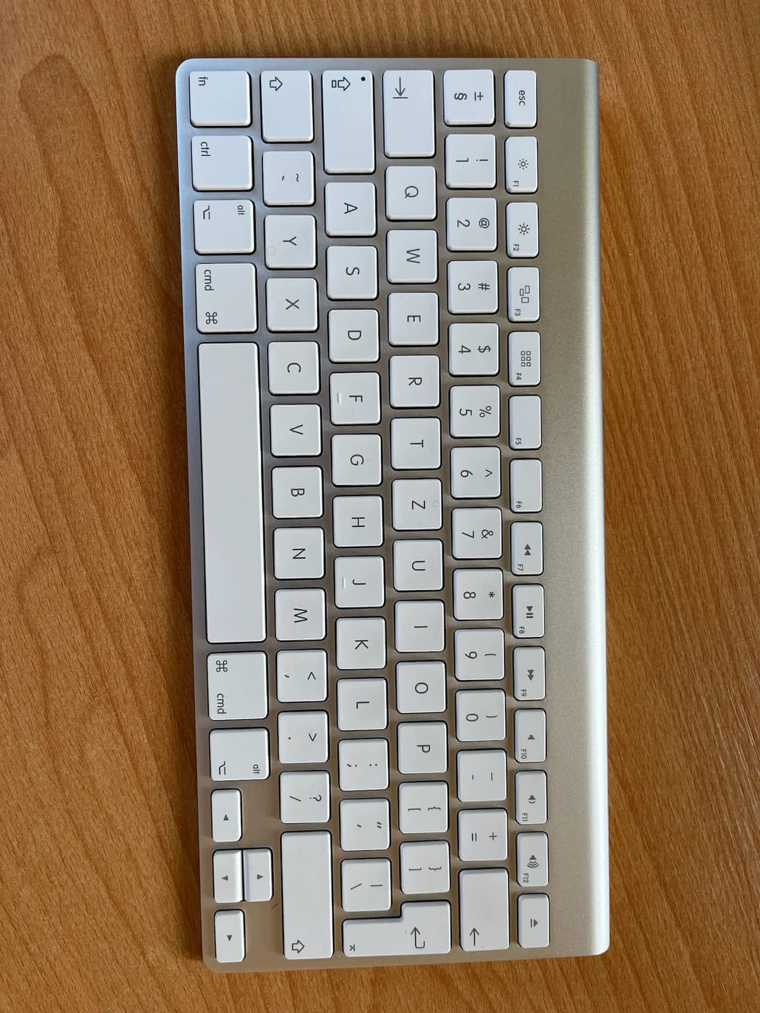 Prodám 2 Apple Bluetooth klávesnice. Lze prodat samostatně. 1. Apple Magic Keyboard – otestovaná, funkční jako nová bez jediného škrábnutí či vyleštěných kláves. Evidentně nepoužívaná nebo opravdu velmi málo. Anglická verze včetně originál boxu. Cena 1500,- 2.Apple Magic Keyboard – otestovaná v pěkném vizuálním stavu. Bohužel nereagují asi 3 klávesy – tuším 2W a s. Česká verze. Takže buď na opravu nebo na díly. Cena 500,-