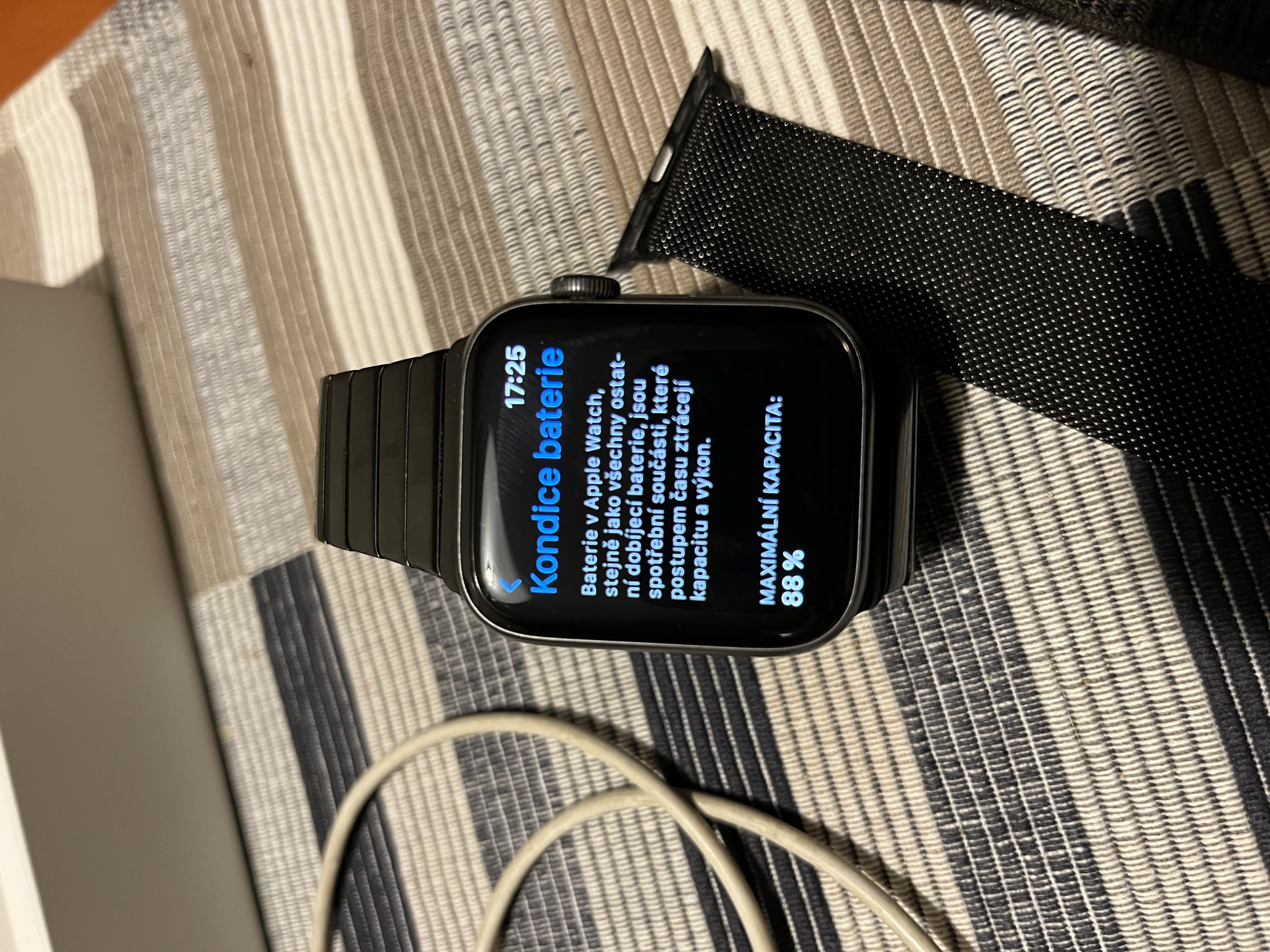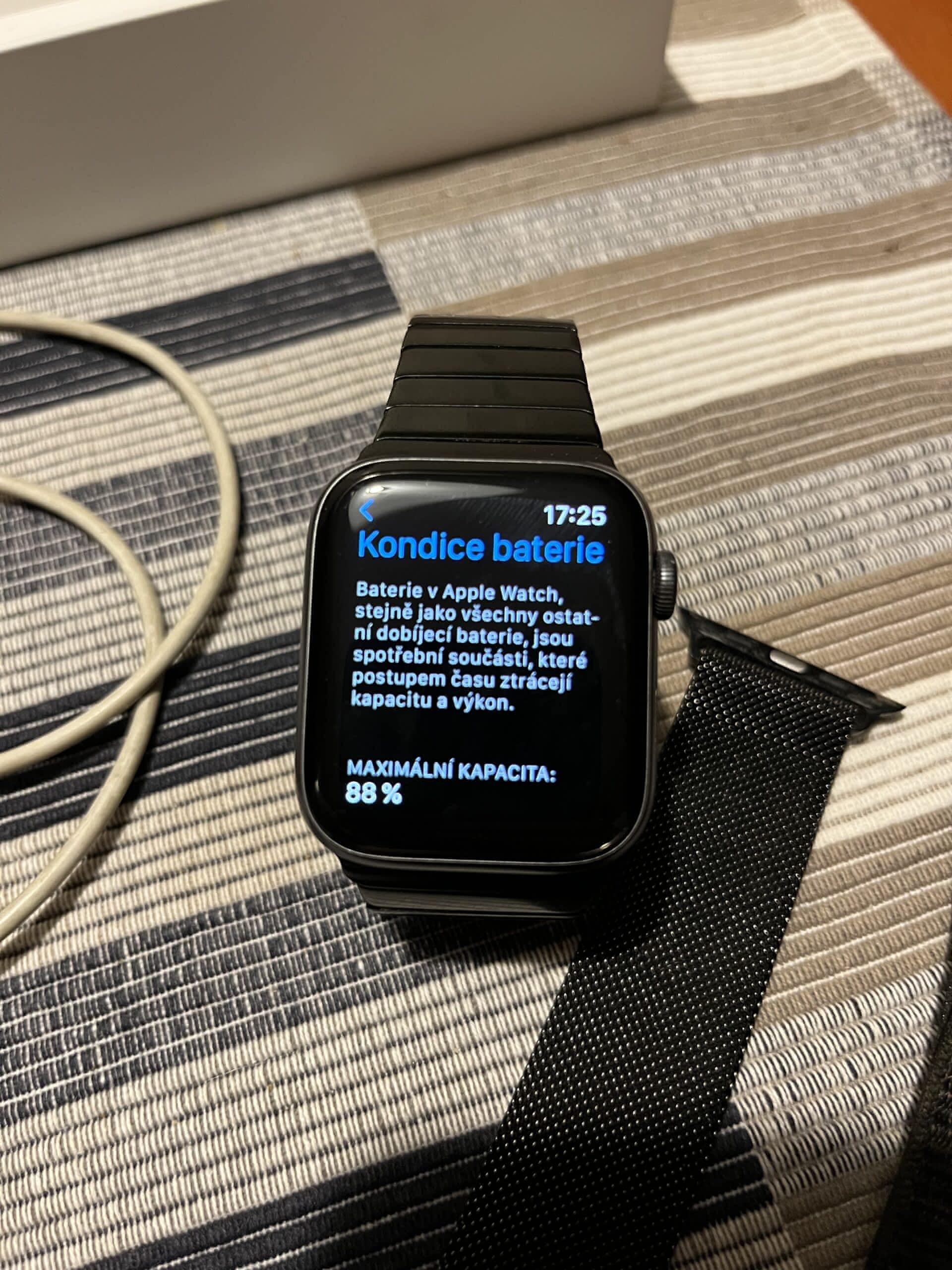 použité, kondice baterie 88%, v perfektním stavu, originál řemínek, milánský tah, ocelový řemínek.