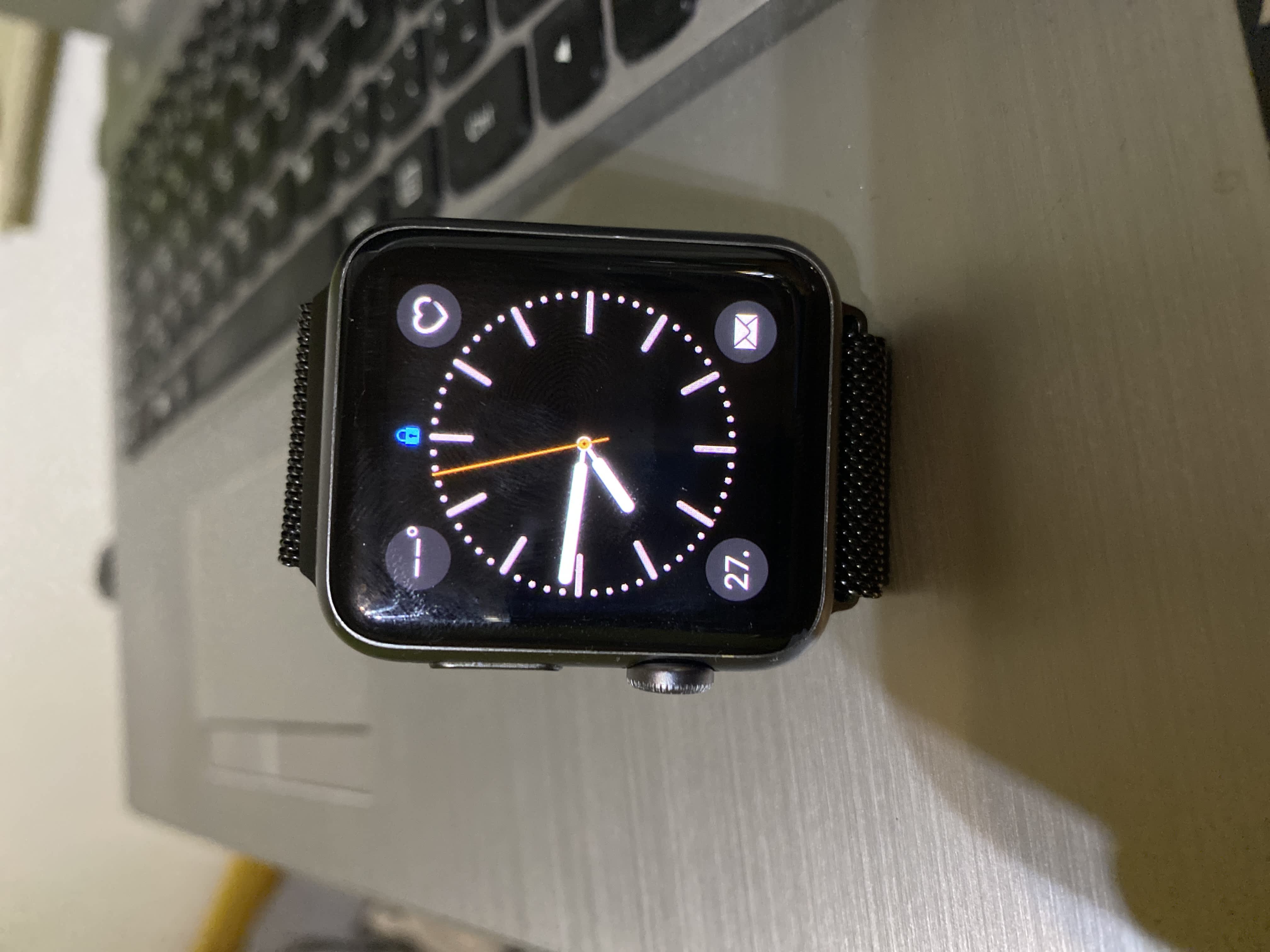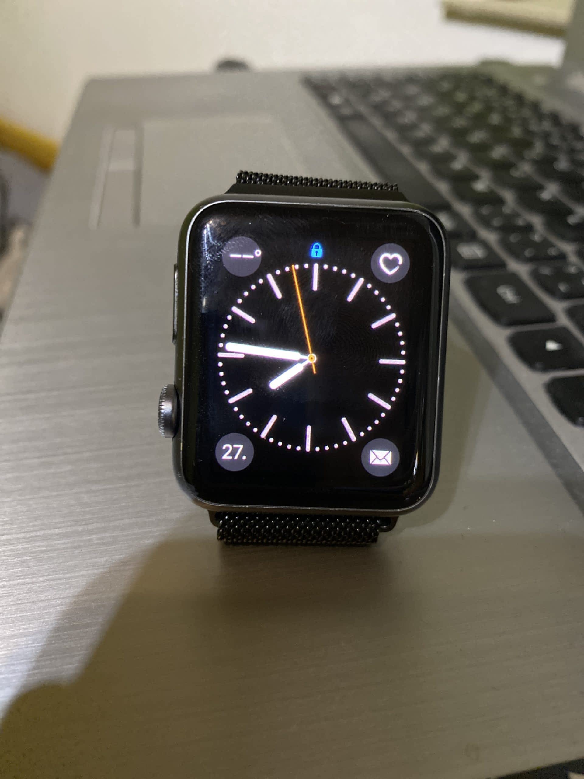 Používáné Apple Watch prvni generace, známky používání, ale vše funguje jak má, kompletní balení s krabičkou včetně pásků .