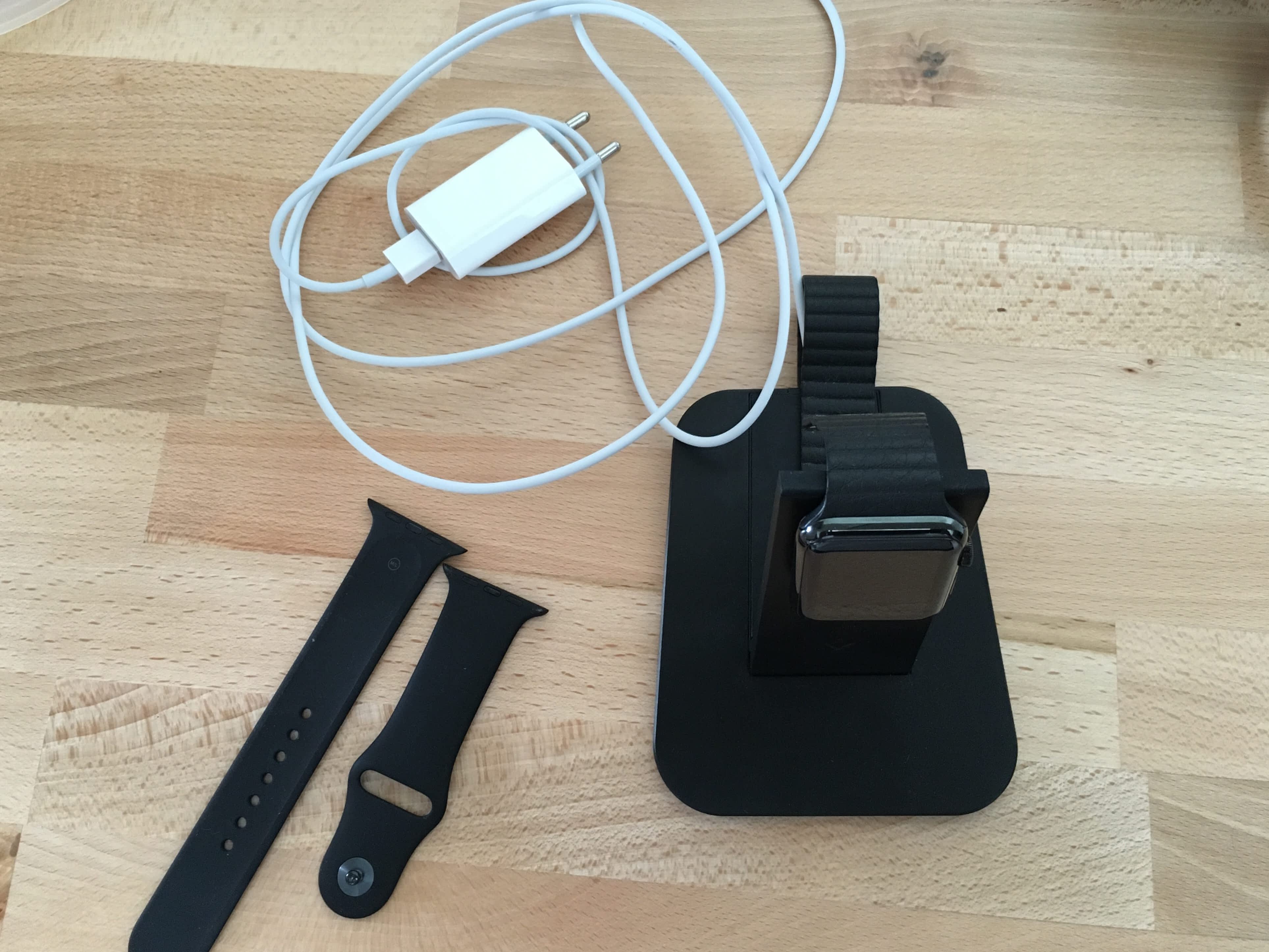 Prodam Apple Watch + nabijeci stojanek, cerny cumovy pasek a cerny magneticky pasek apple
