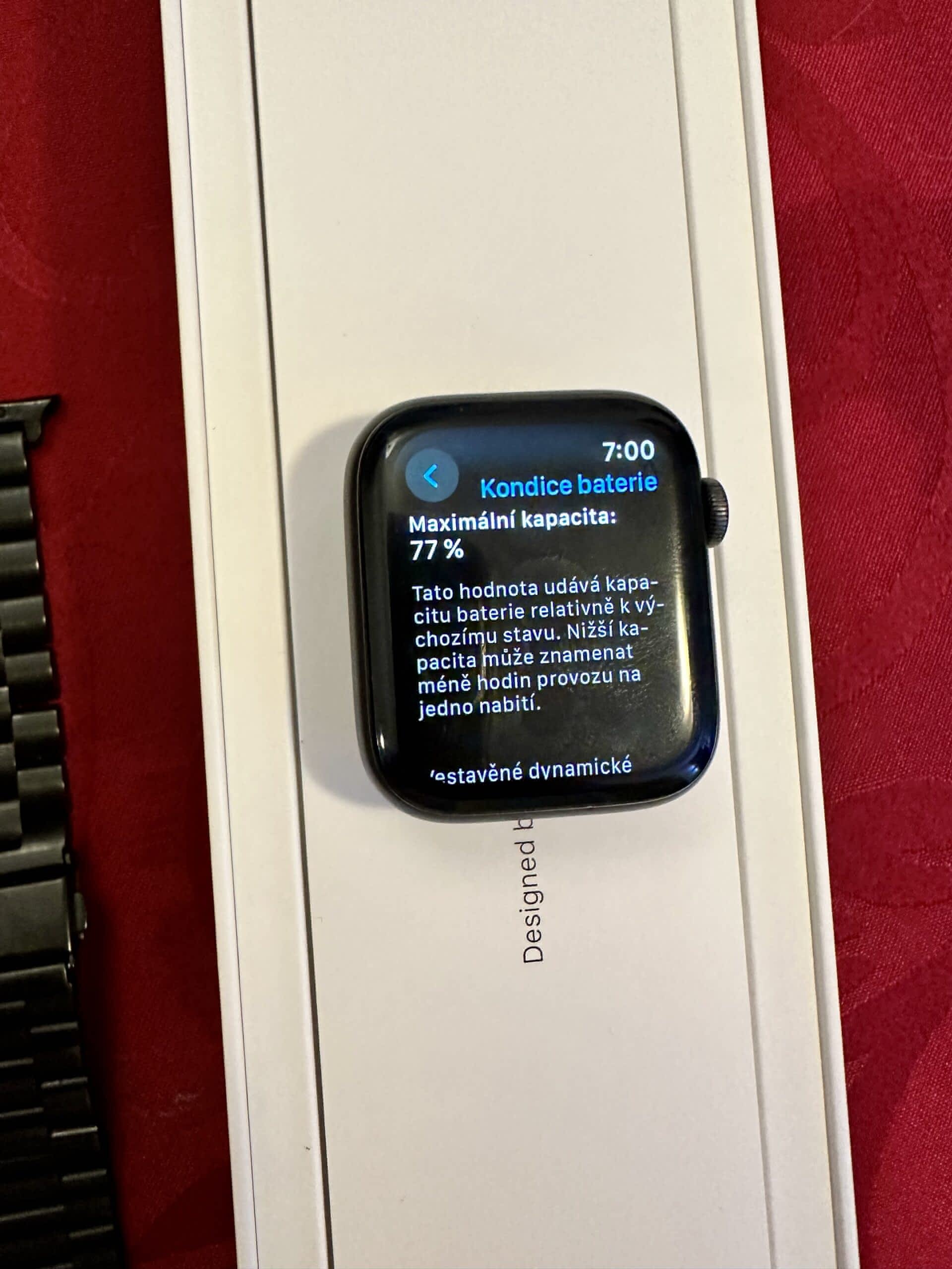 Prodám Apple Watch, série 5, 44mm space grey, hodinky jsou plné funkční s kompletním balením, stav baterie 77%, k hodinkám přidám kovový řemínek. Preferuji osobní předání v Praze, aby si kupující vše zkontroloval na místě.