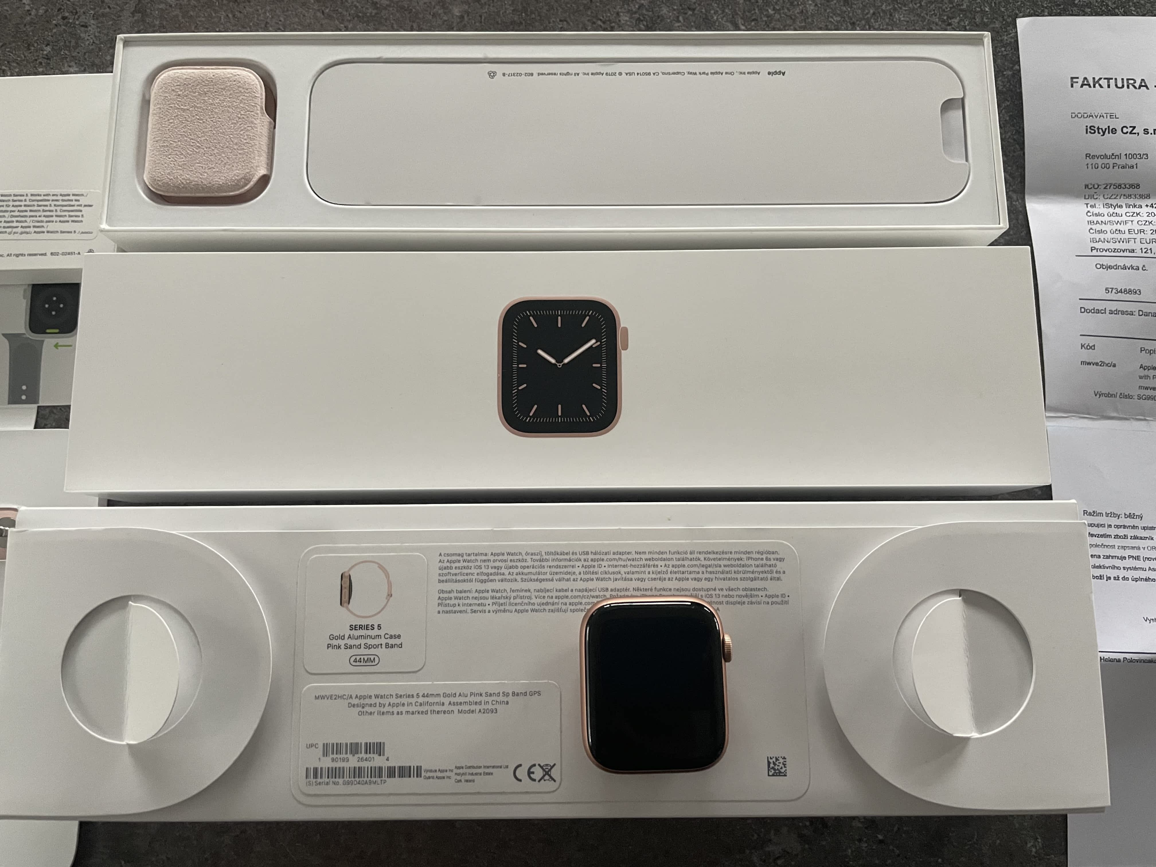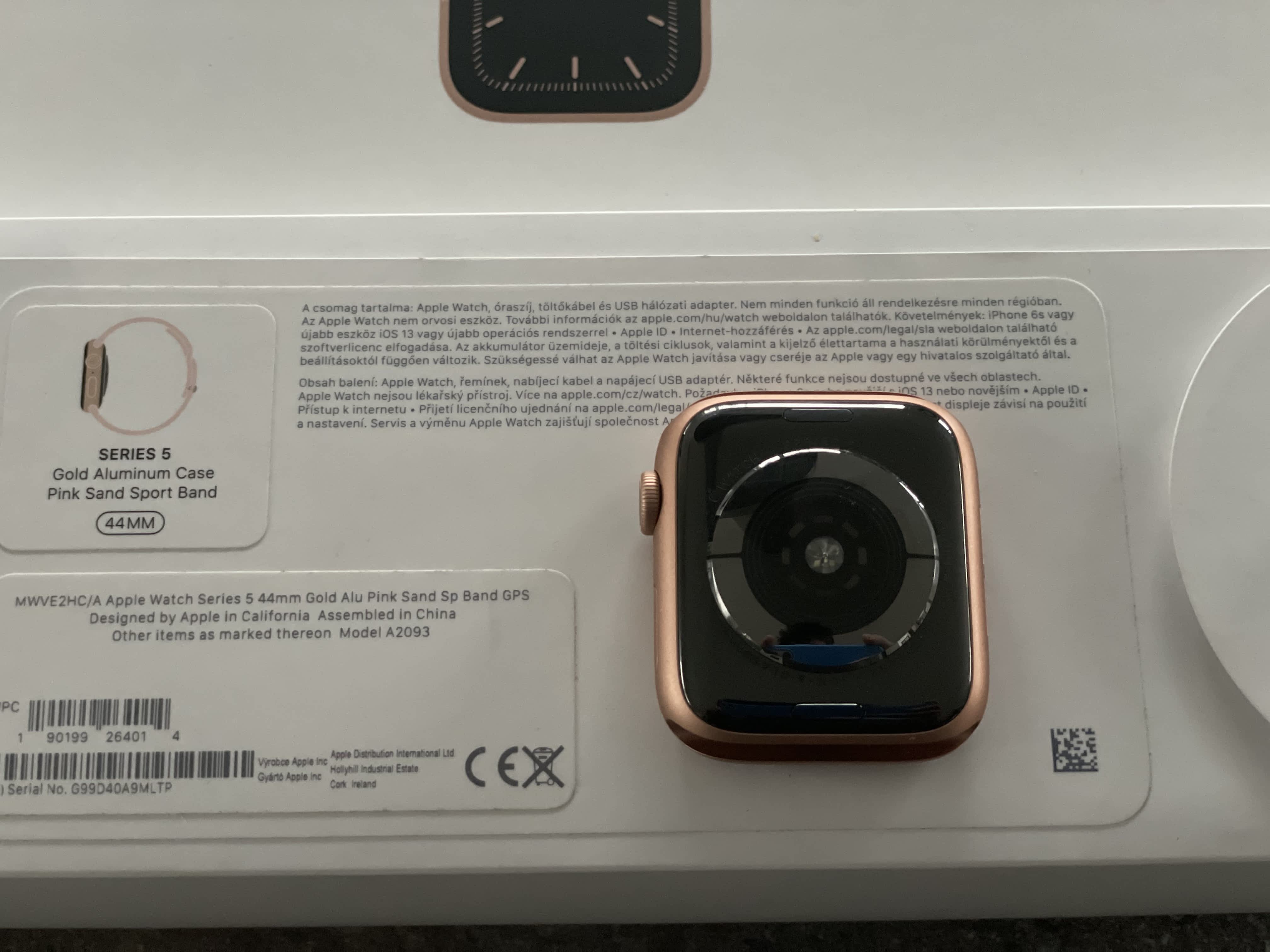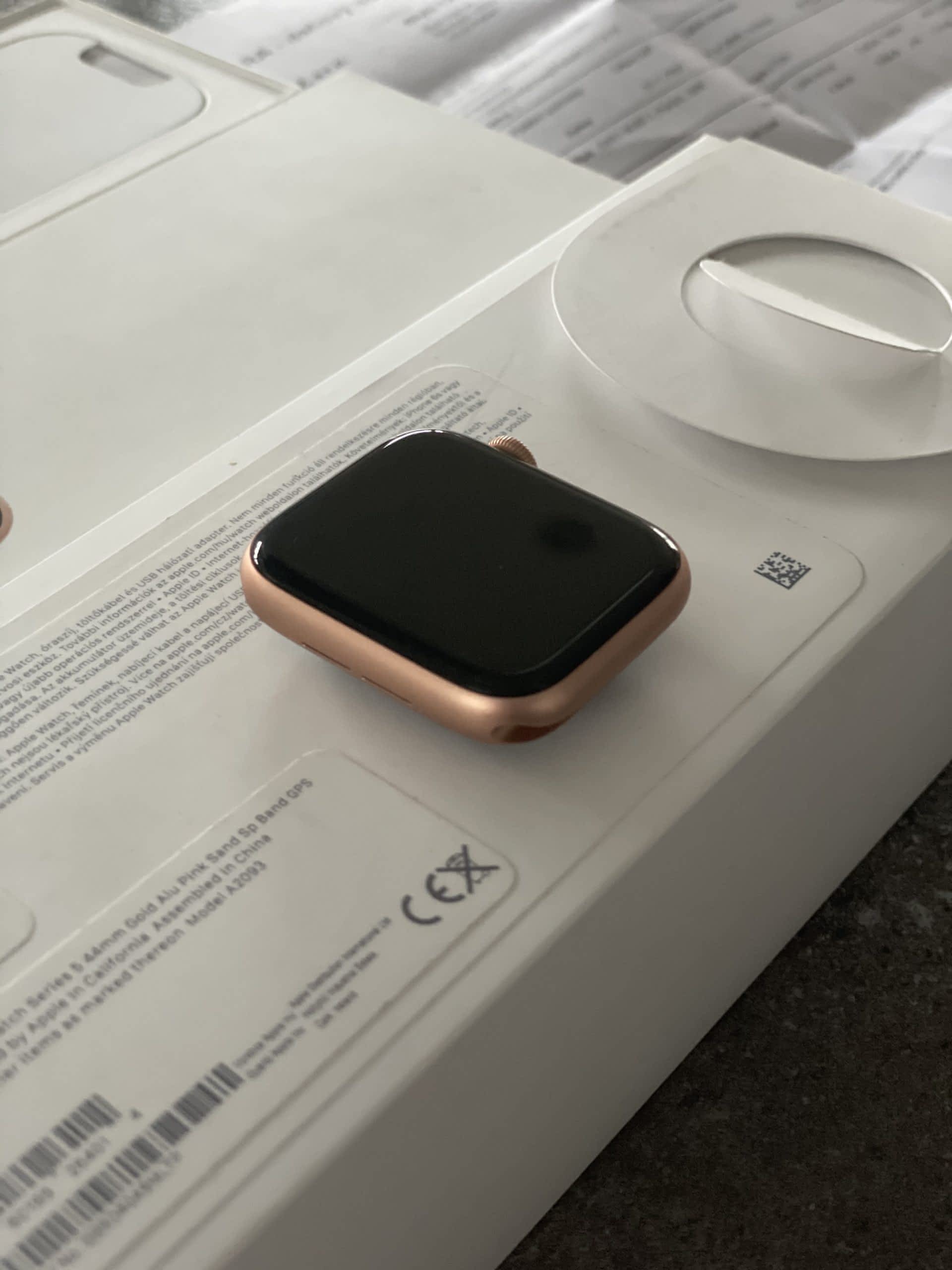 Prodam hodinky apple watch 5 ve verzi 44mm,zlatá barva.Top stav,kompletni baleni v original krabici,koupeny 27.11.2020 s dvoluetou zárukou do 11/2022.Doklad o koupi součástí,pridam černý řemínek.