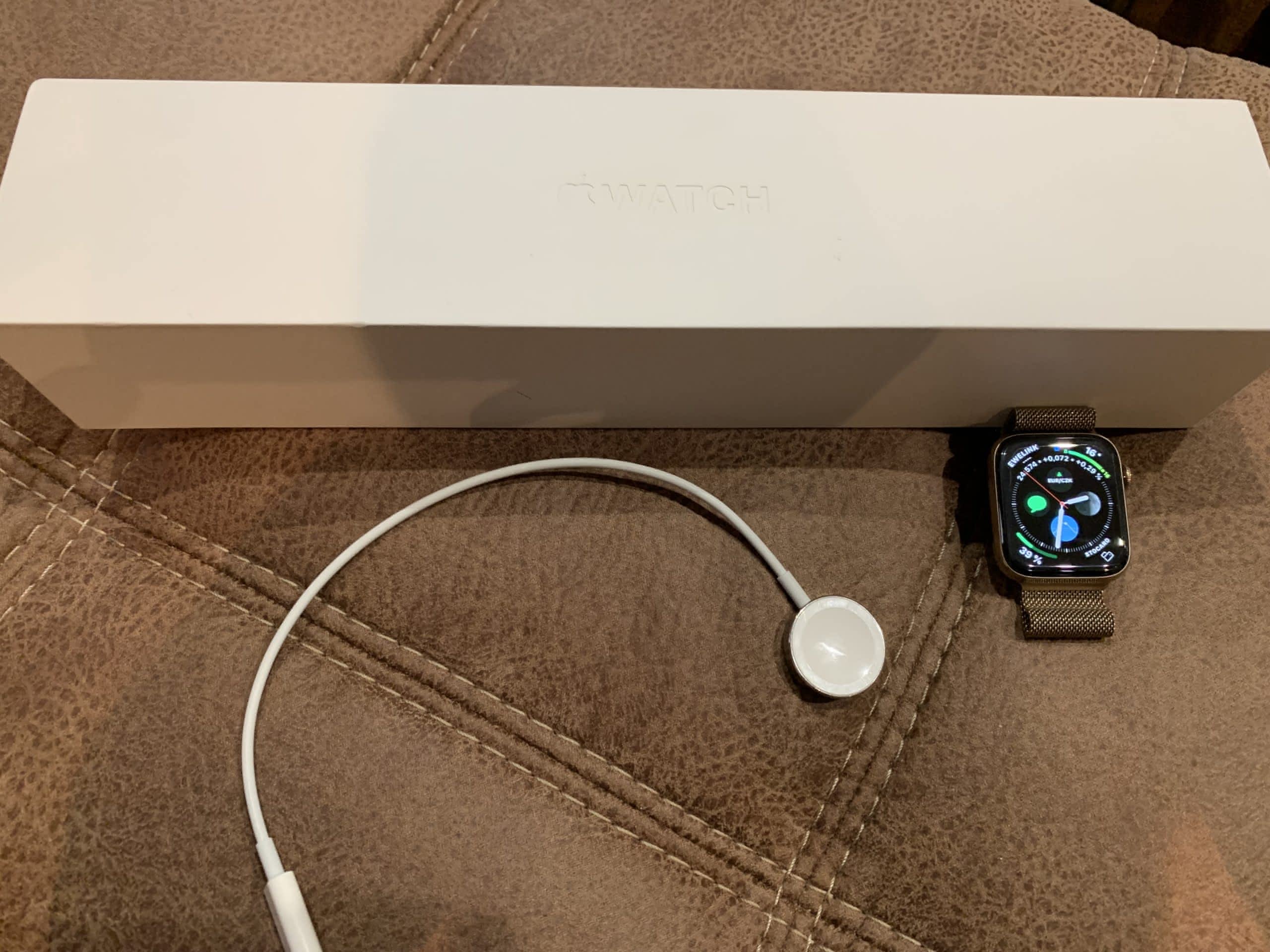 Nabízím Apple watch páté generace v ocelovém pouzdře a se safírovým sklem. Nabíječka USB C a milánský tah k tomu. Krabička je od AW series 2.
