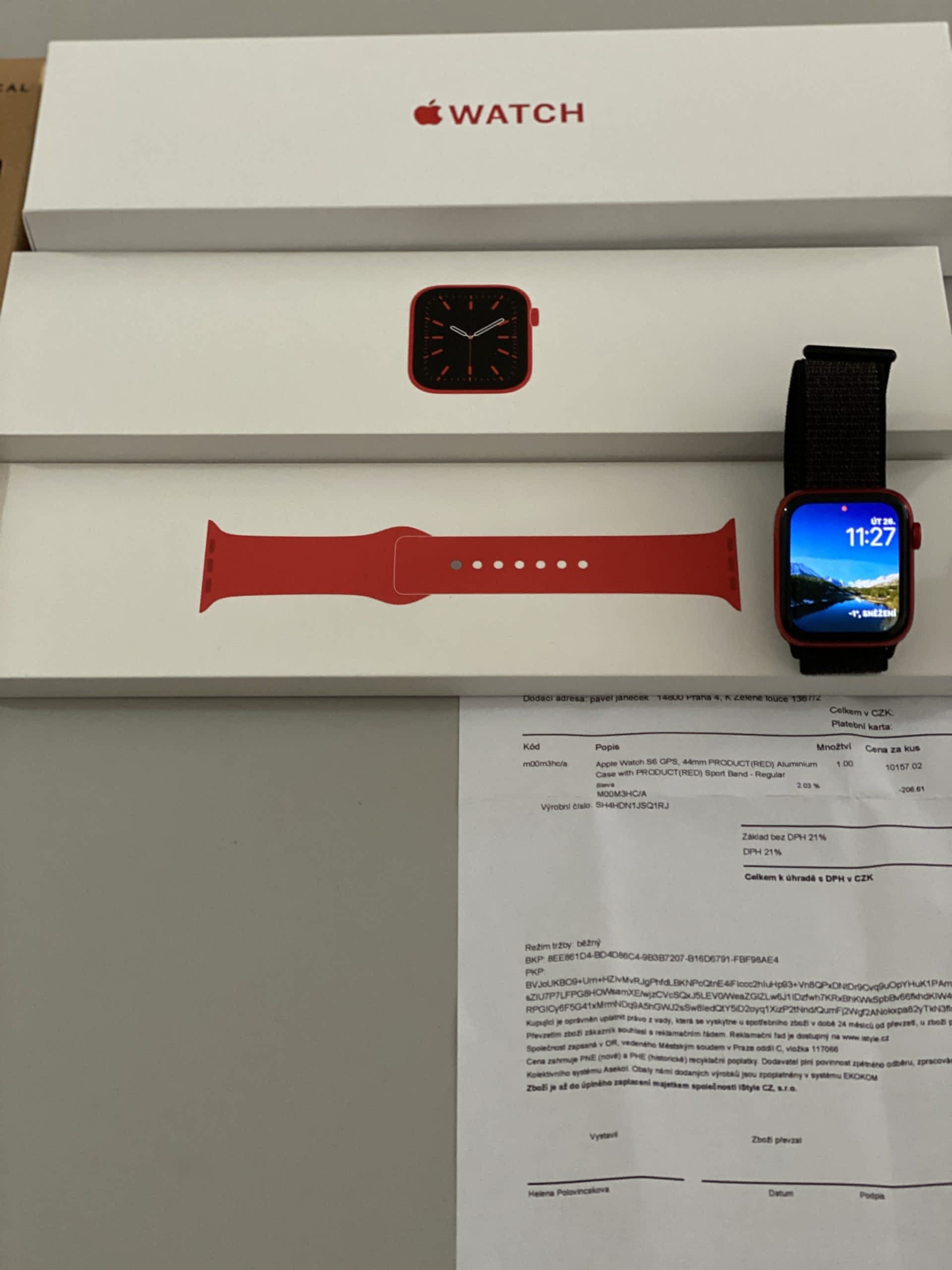 Prodam Apple Watch 6 44mm Red edice.Koupeno v Istyle 13.12 2020 Hodinky používaný jen chvílí.Baleni kompletní silikonové červený pasek plus sportovní nylonovy cerny pasek.Preferuji osobni předání.