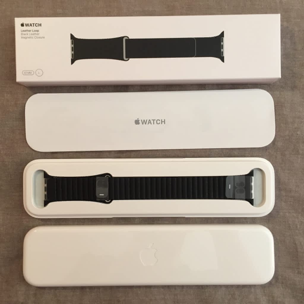 Prodám téměř nepoužitý originální černý kožený pásek Apple Watch Leather Loop k hodinkám Apple Watch.