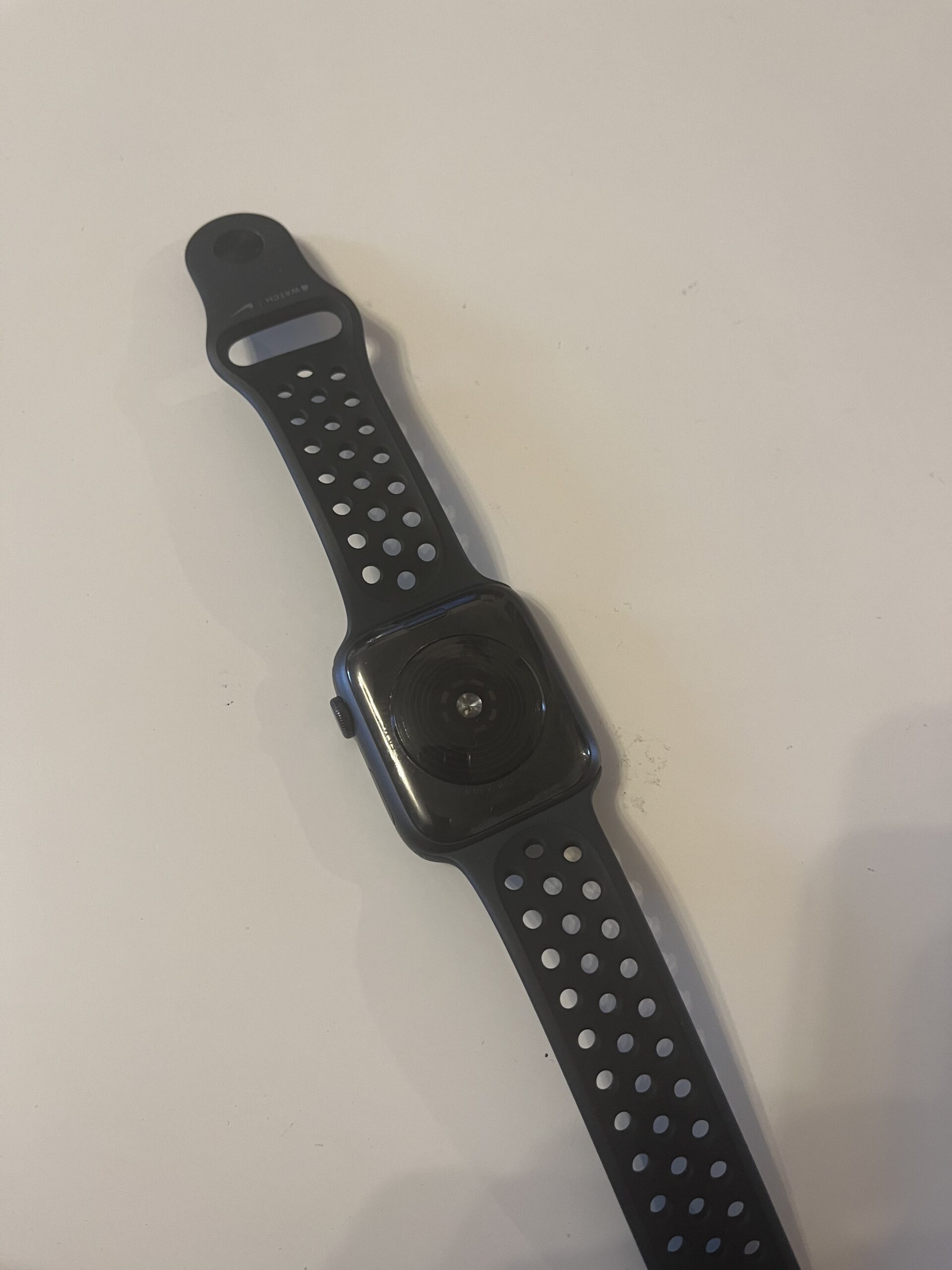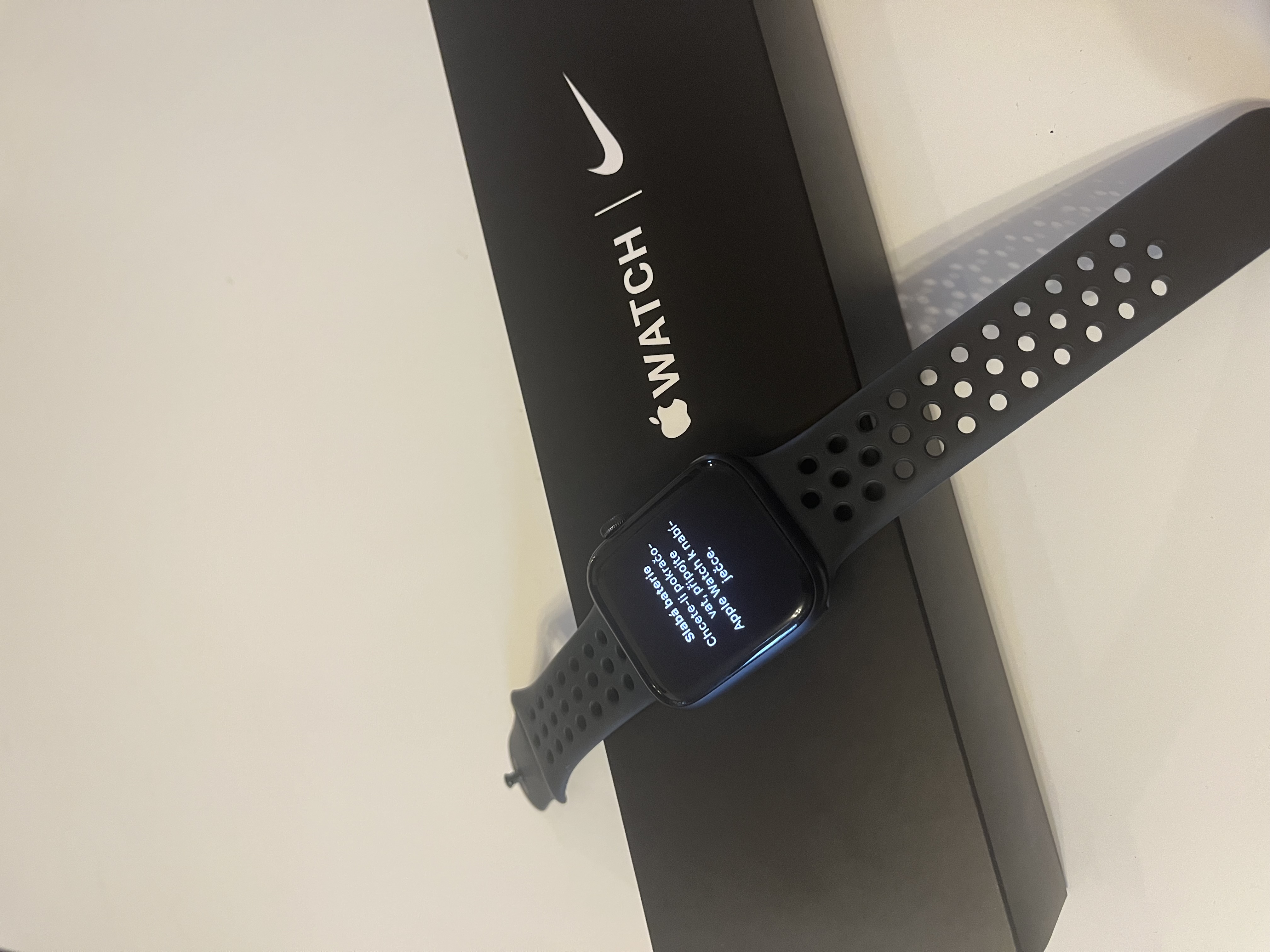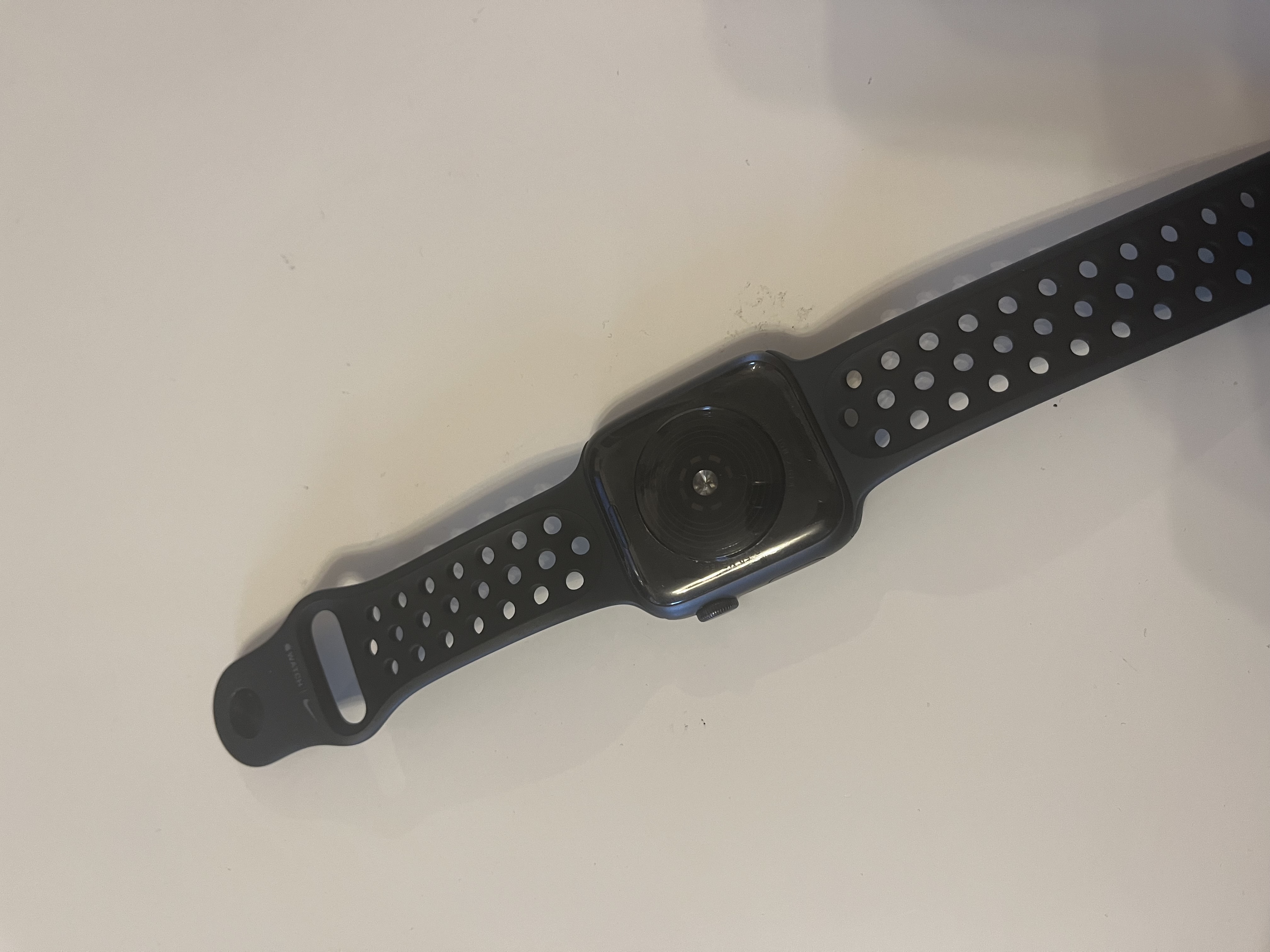 Apple Watch Nike SE 44mm Vesmírně šedý hliník s antracitovým/černým sportovním řemínkem Nike.