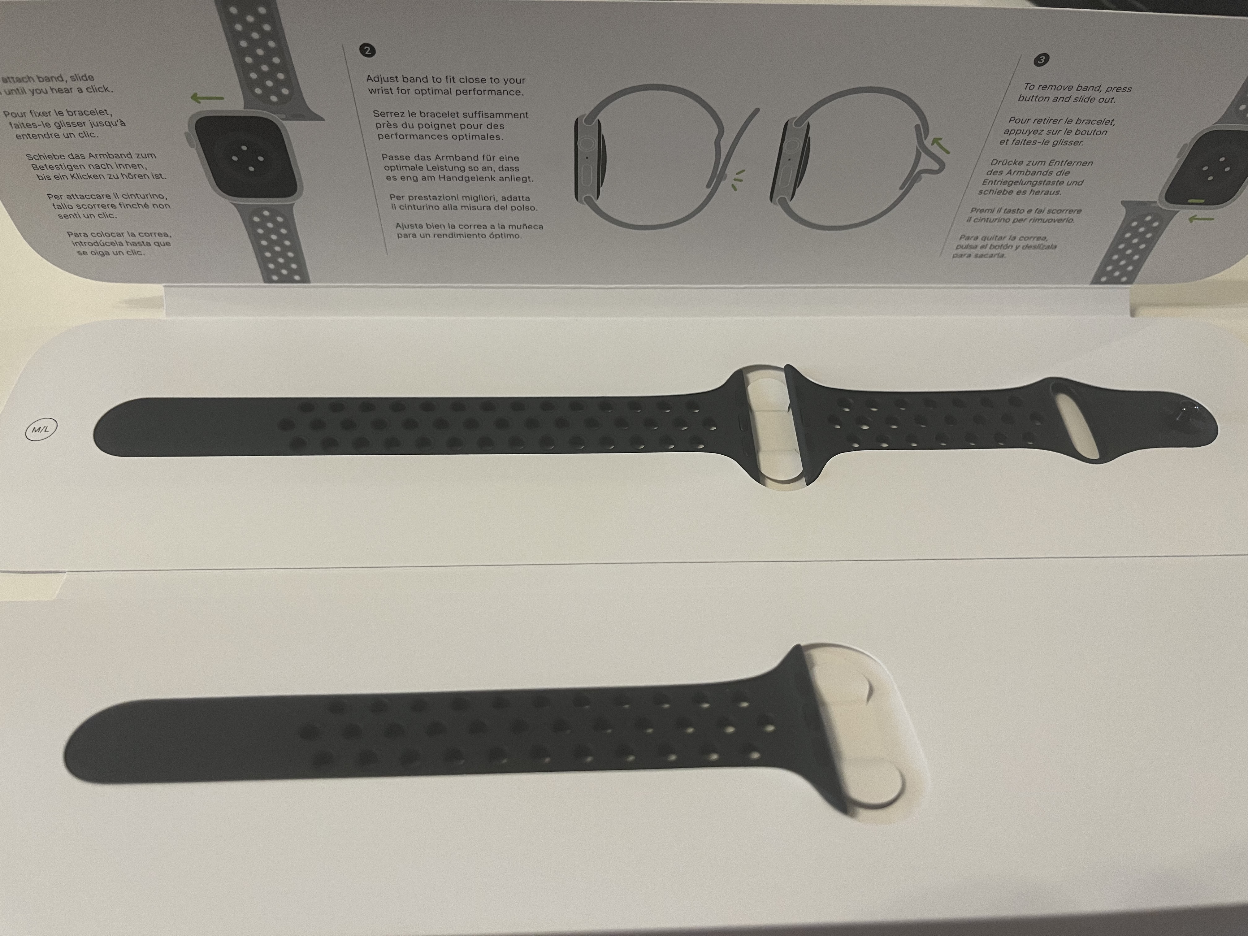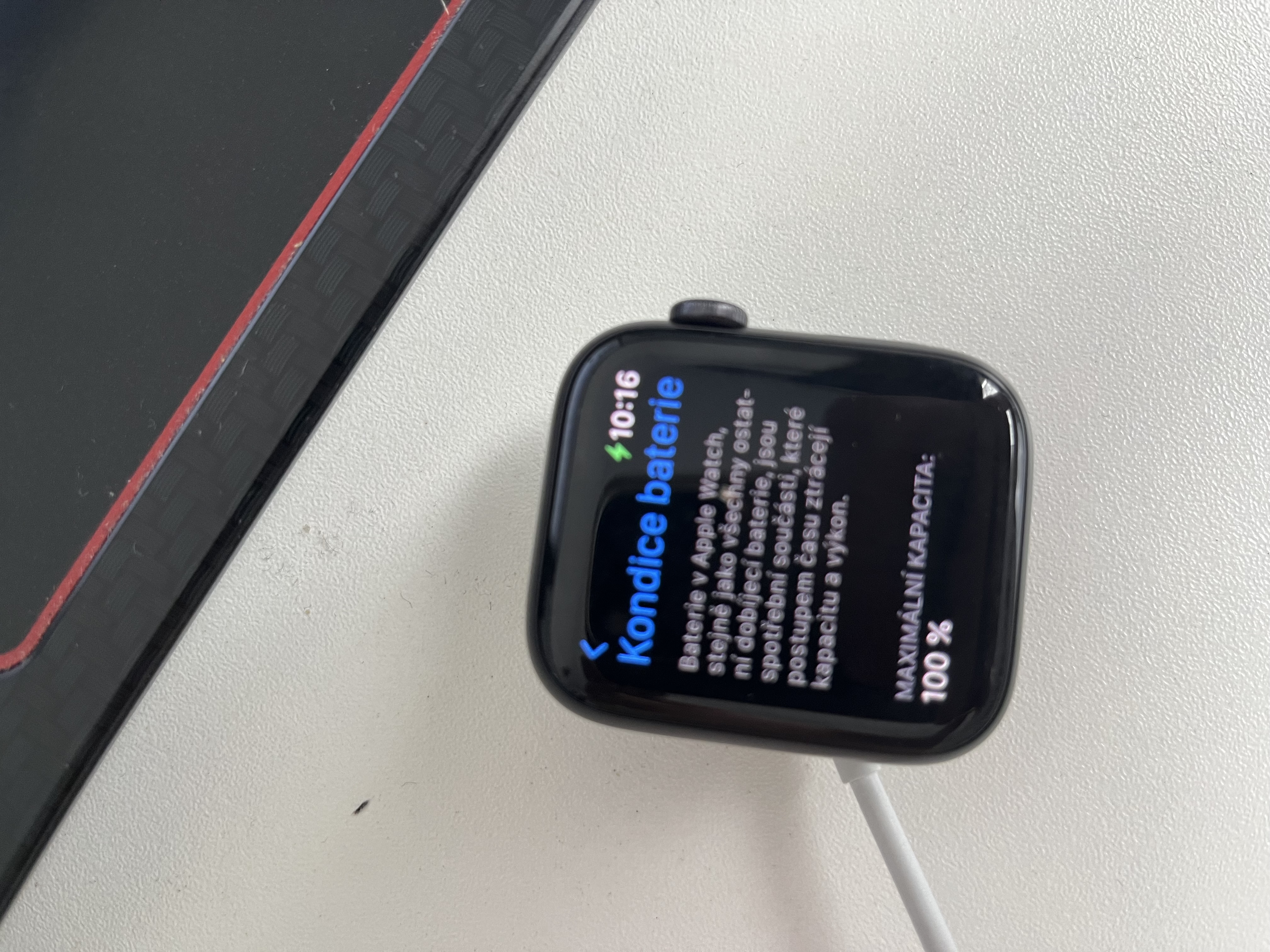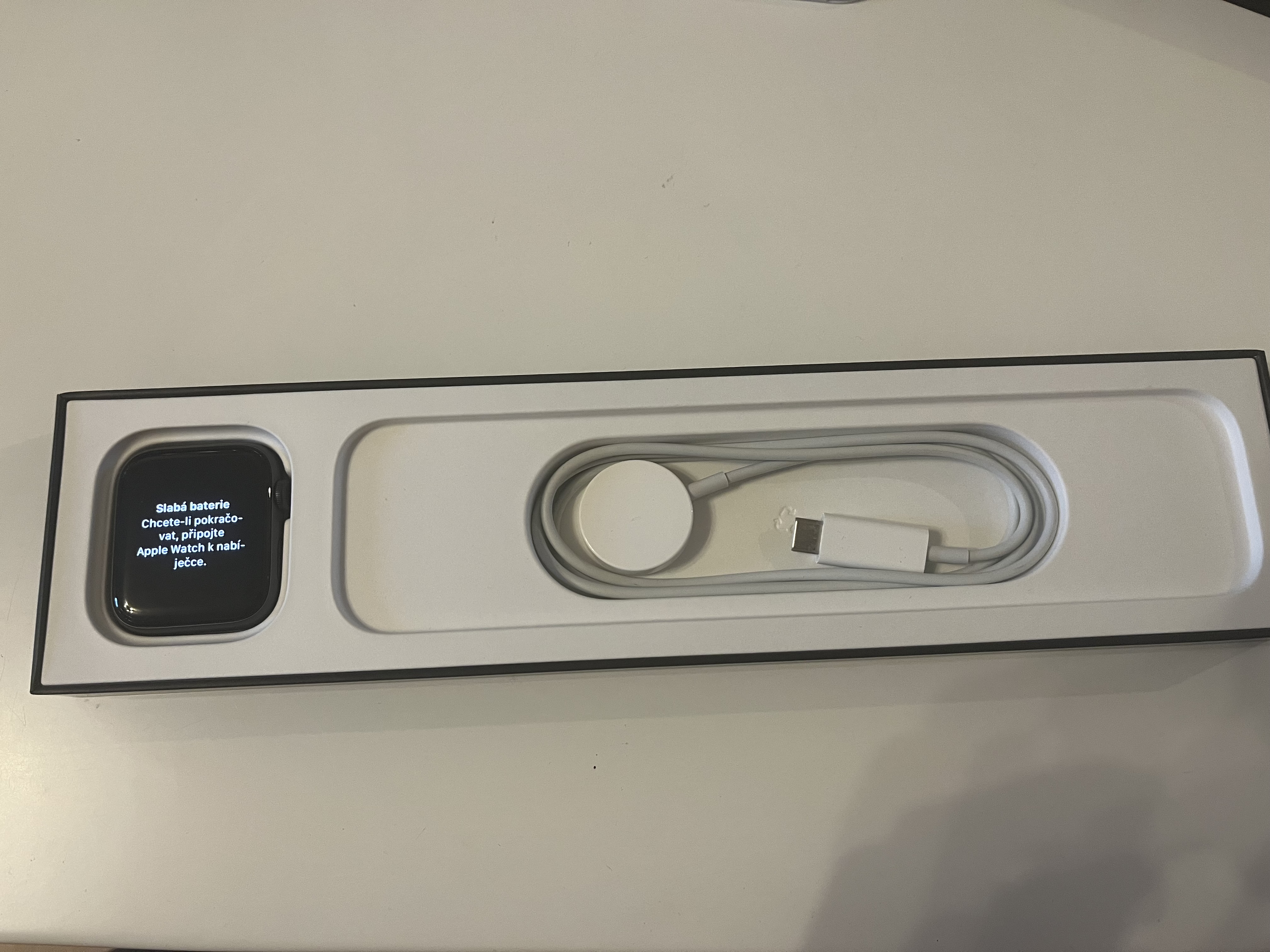 Apple Watch Nike SE 44mm Vesmírně šedý hliník s antracitovým/černým sportovním řemínkem Nike.