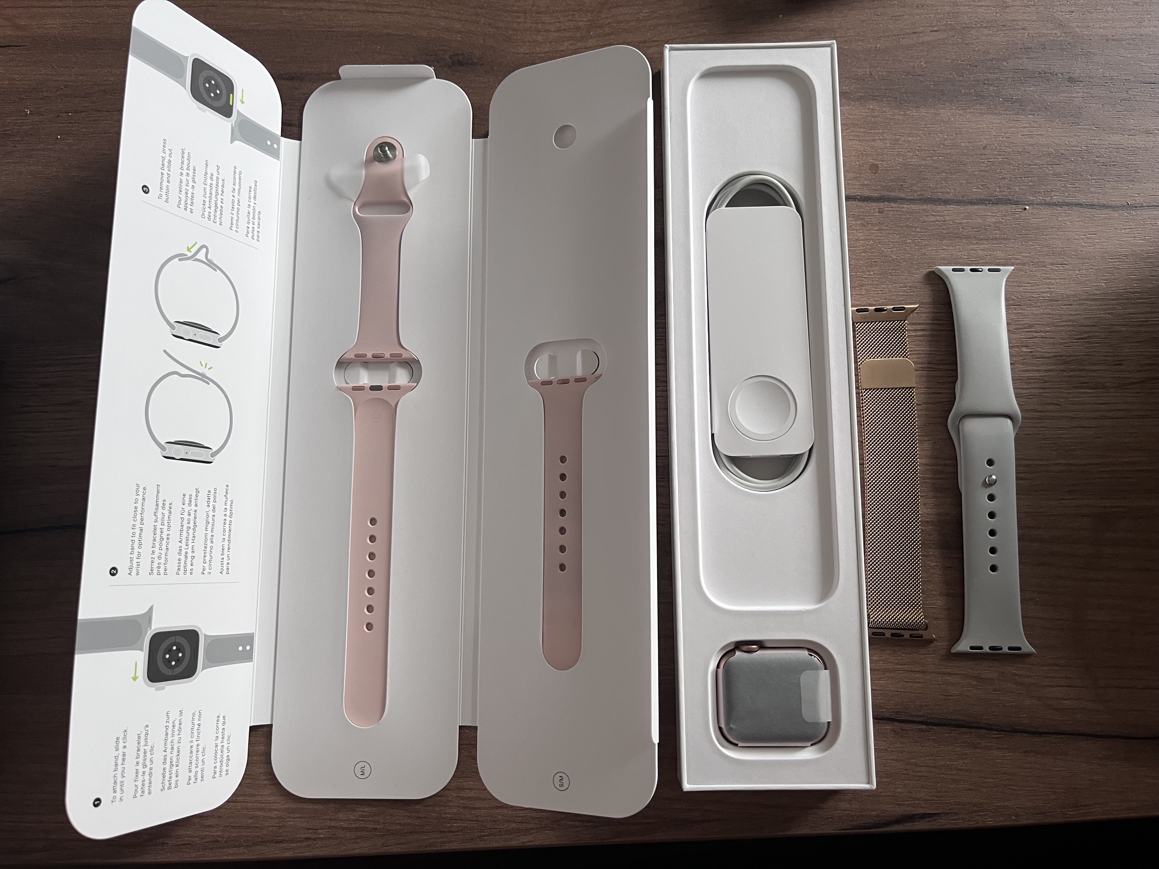 Prodám používané Apple Watch SE 2020 40mm, Pink, zakoupené 3/2021. Plně funkční, kompletní balení i s dokladem, včetně dvou řemínků.