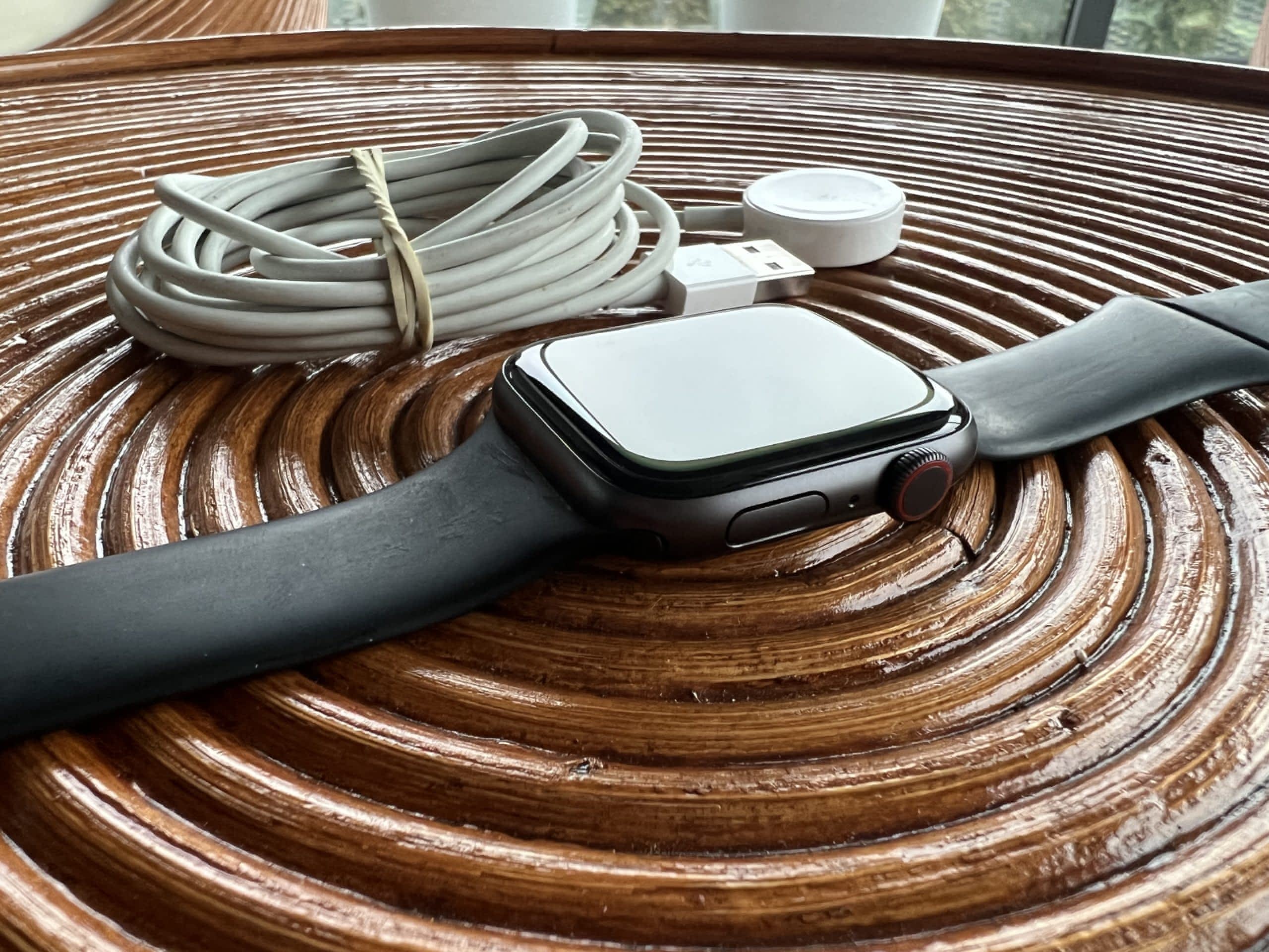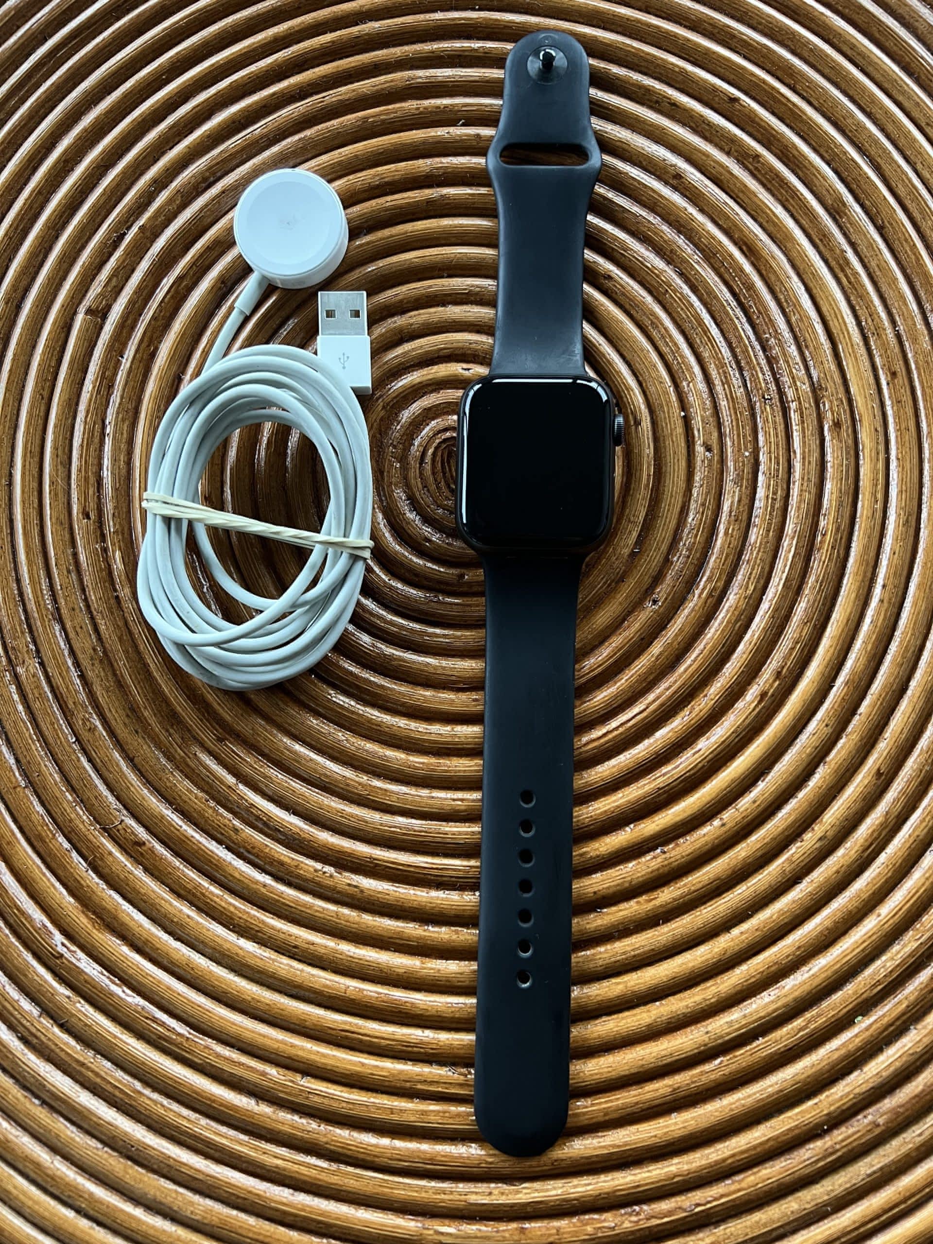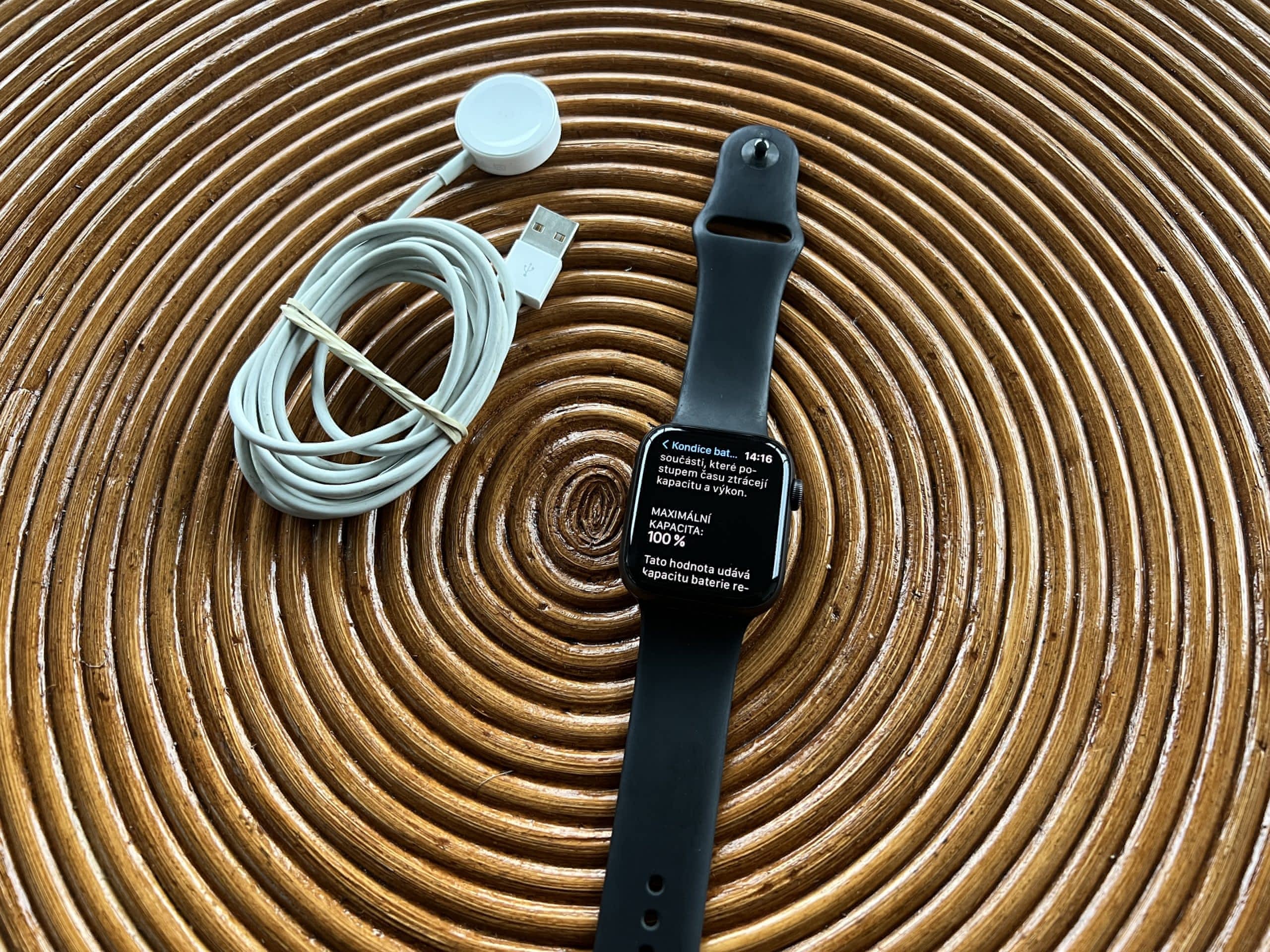Prodam apple watch 44mm vesmirne šedý hliník s černym sportovnim řemínkem ve verzi s moznosti použití s e-sim (cellular).Super stav bez škrábanečků jen s nabíječkou.Kapacita baterie 100%