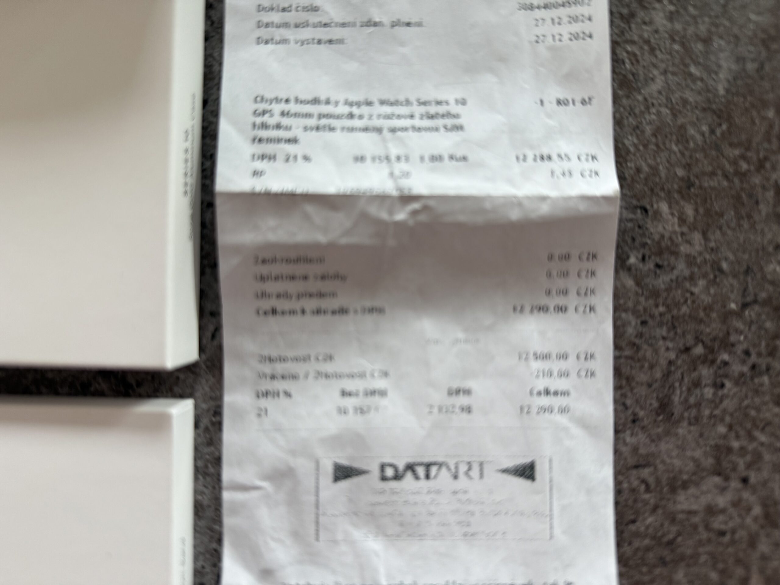Prodam nejnovejsi chytre hodinky apple watch serie 10 ve verzi 46mm v barvě Rose Gold kupované 27.12 2024 v DATART za 12290,- v hotovosti se zárukou na 2 roky takze do 12/2026.Pouzivane jen chvili a to vzdy s ochrannou folii na displeji.Kompletni original baleni,pridám ochranný kryt.Vse viz foto.Kapacita baterie 100%