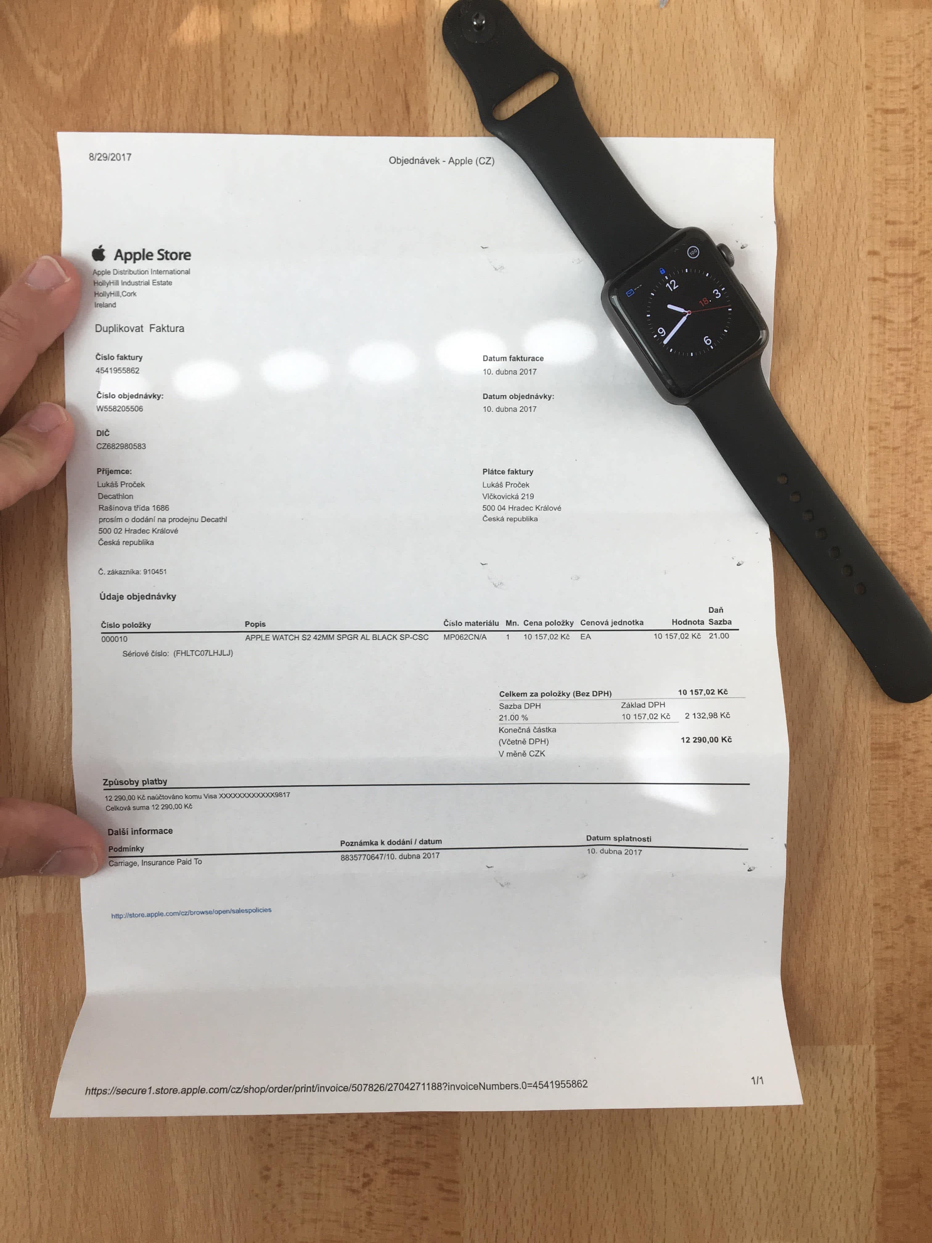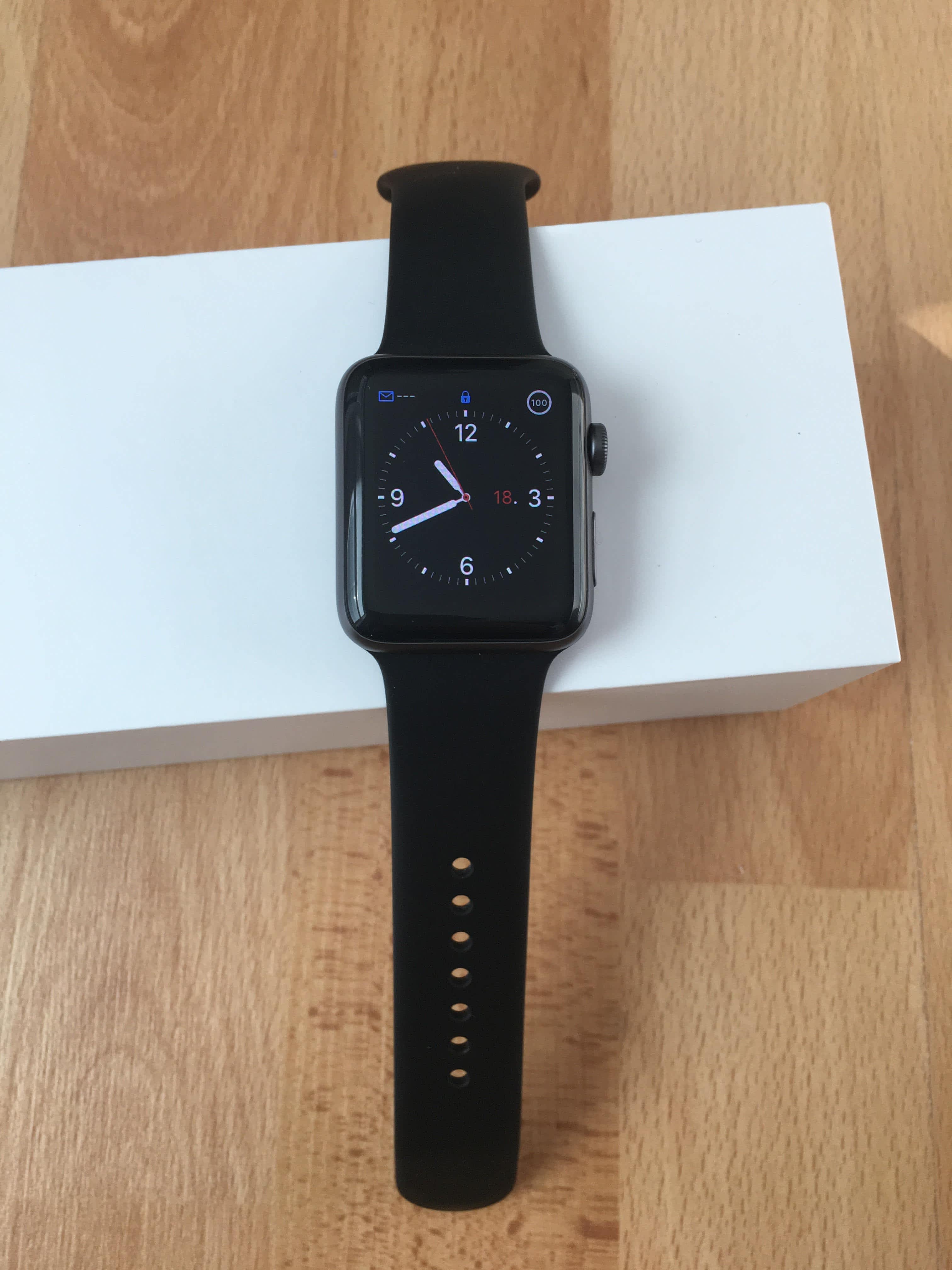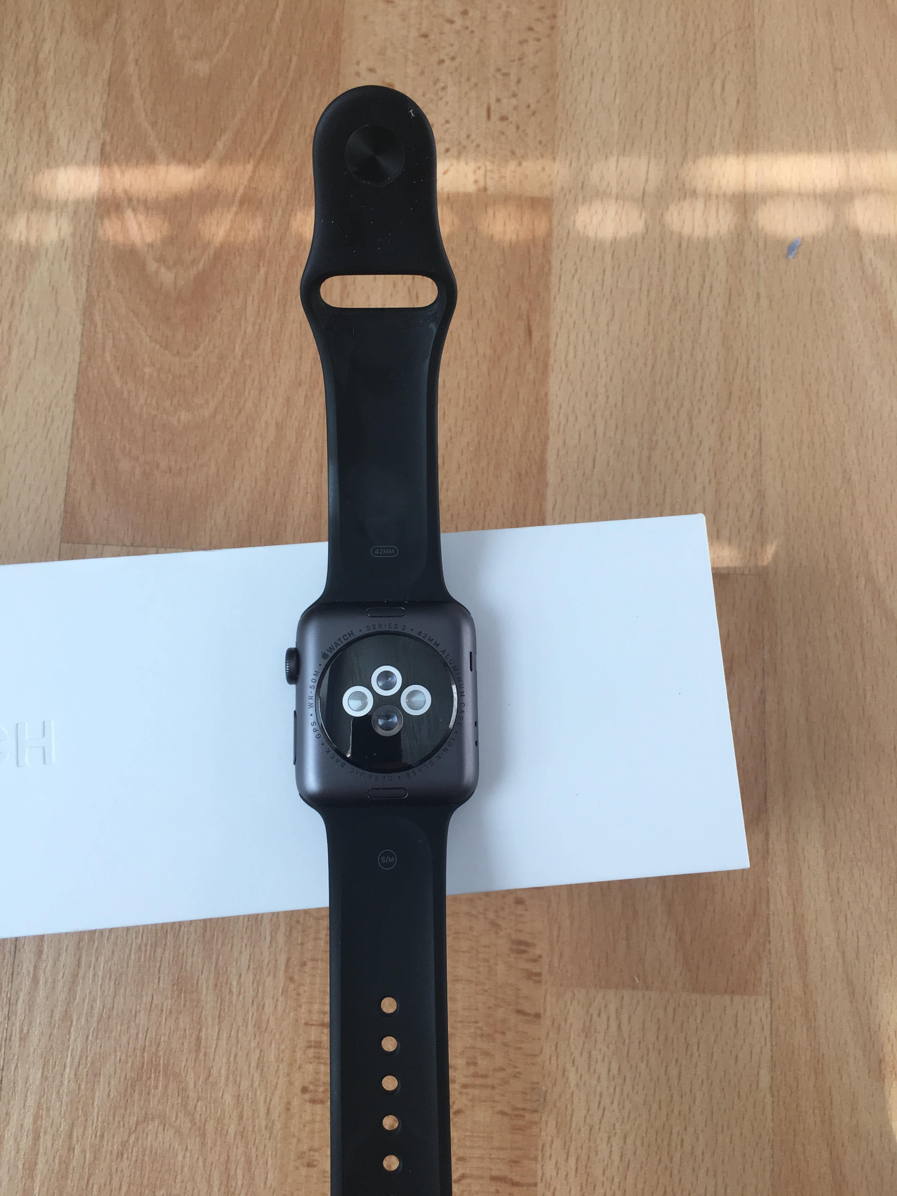 Oled retina displej s technologií Force Touch. Ion-X sklo, hliníkové pouzdro s keramickou zadní stranou, digital crown, snímač tepové frekvence, WiFi, GPS, bluetooth, voděodolné do 50m, výdrž baterie až 18 hodin. Hodinky byly kupované v dubnu 2017v Apple Store, záruka 2 roky. Jsou ve výborném stavu, bez poškození. Kompletní balení. Současná cena je 12 290 Kč (https://www.iwant.cz/Apple-Watch-Series-2-42mm-vesmirne-sedy-hlinik-s-cernym-sportovnim-reminkem-2016–p6288)