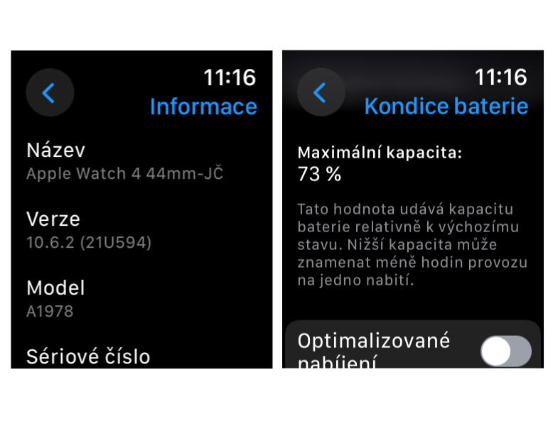 Stav baterie 73%, viz snímek.