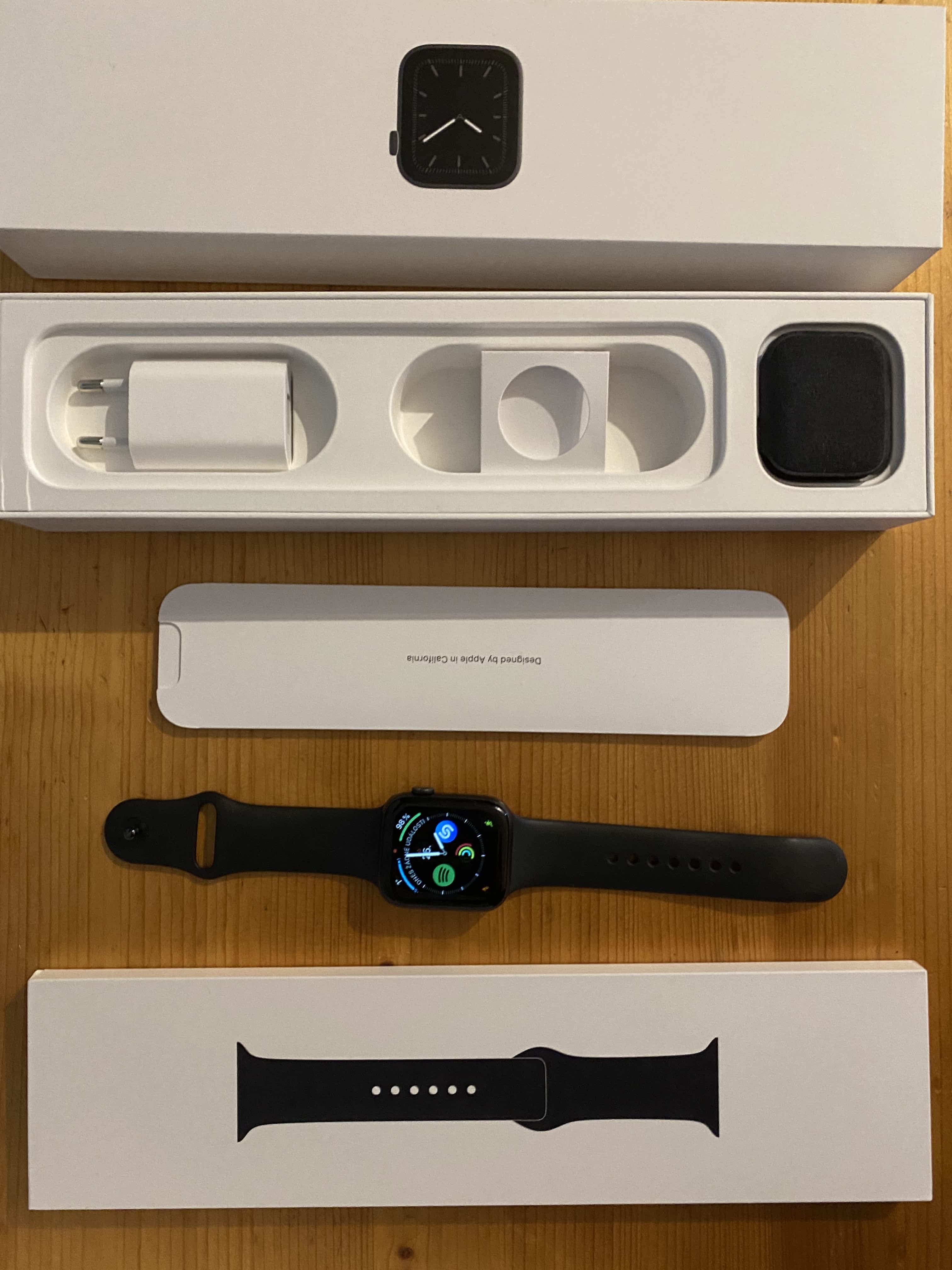 Prodám Apple Watch Series 5 44 mm Space Grey kupované před rokem ve Švýcarsku. Málo nošené…Výborný stav!! Kapacita baterie 96%.Přidám silikonové pouzdro. Kompletní krabička.