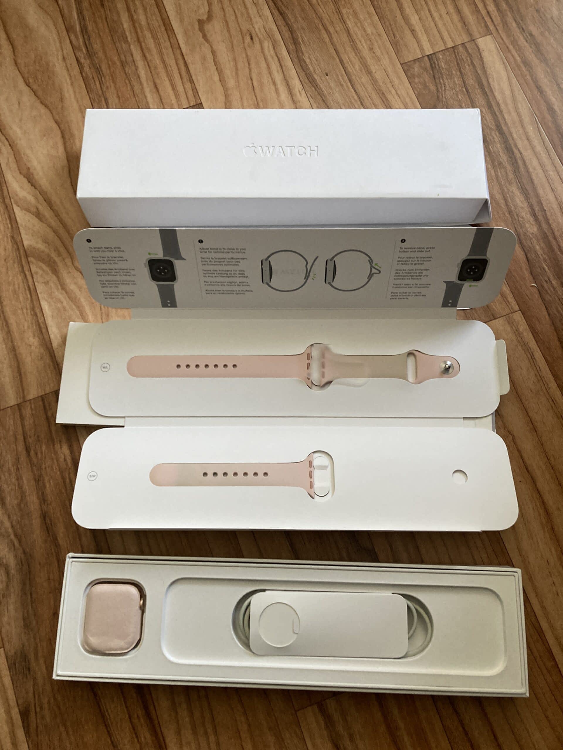 Prodám dva roky používané Apple Watch 6, s GPS, 40 mm, pouzdro ze zlatého hliníku a pískově růžový náramek ze silikonu. Paměť 32GB. PC před 2 lety 8.500 Kč. Stav nyní B – drobné škrábance na displeji, plně funkční, výdrž jako nové 18 hodin používání. Včetně krabičky a nabíječky. K dispozici nepoužitý pásek M/L, používala jsem S/M.